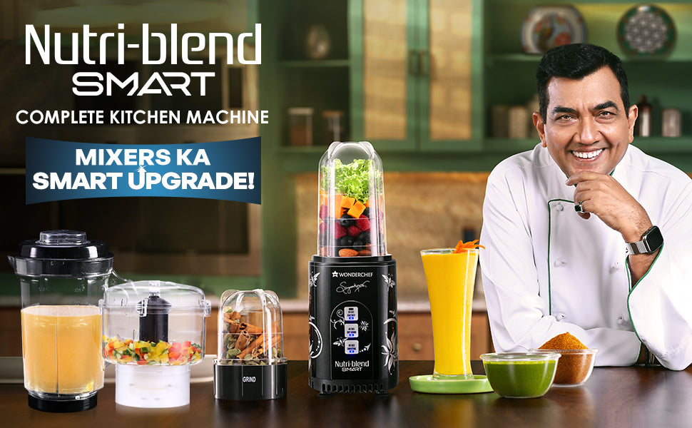Upgrade your kitchen with Nutri-blend SMARTâ„¢ Complete Kitchen Machine (CKM)! India’s first fully automatic mixer grinder now equipped with a blending jar, grinding jar, big juicer jar with filter, and a vegetable chopper, this product is designed to revolutionise how you prepare delicacies. Add supreme convenience to the kitchen and set yourself free to explore other boundless possibilities. It’s time to bid adieu to the ordinary mixer grinders and embrace a smart way of cooking. Get ready to experience Mixers Ka Smart Upgrade with Nutri-blend SMARTâ„¢.