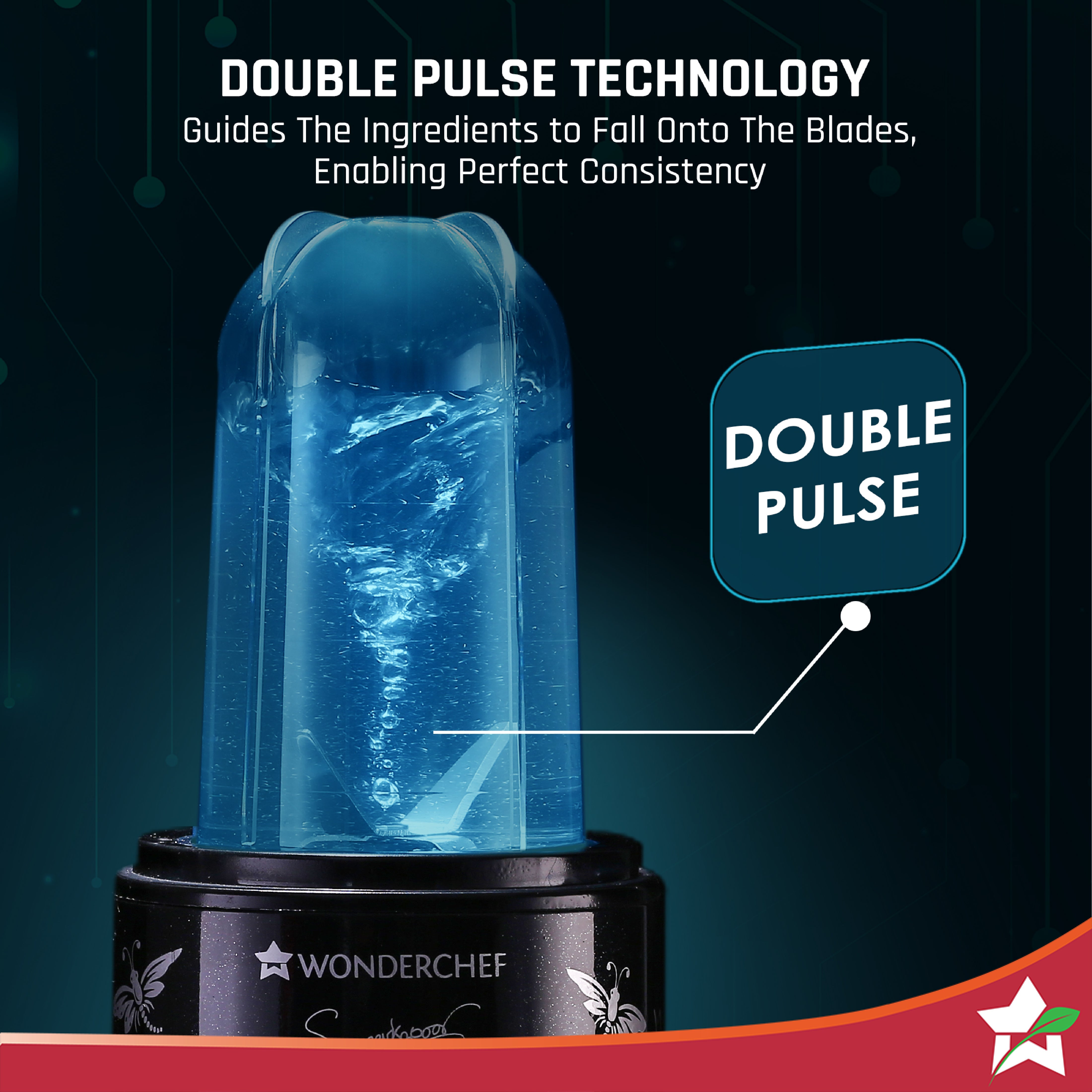 - Double Pulse Technology: Once the mixer starts, it stops twice for 2 seconds after every 4 seconds. This feature of very sophisticated blenders allows the contents to settle down and fall back on the blades for perfect blending rather than sticking on the sides.