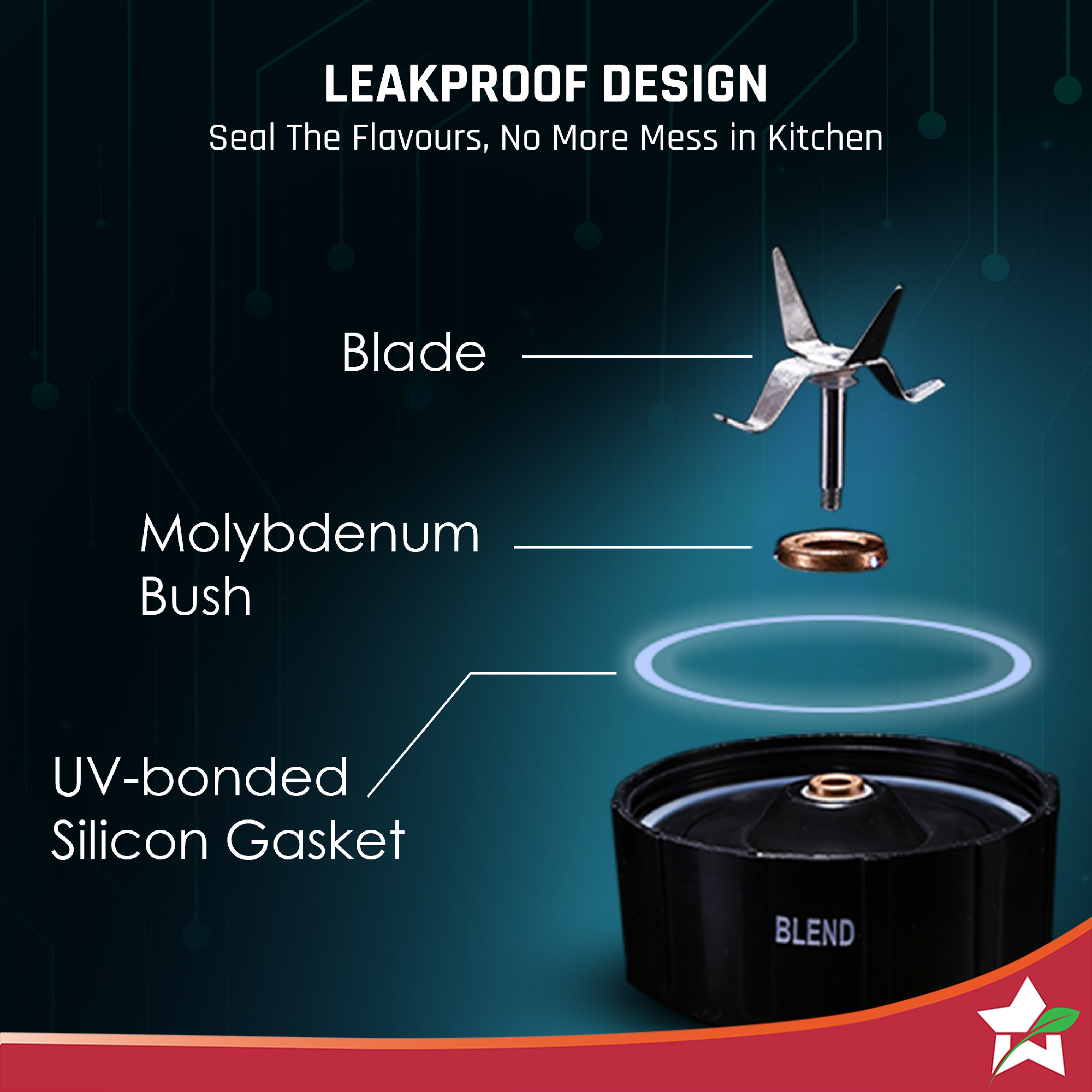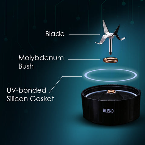 Experience hassle-free performance with Nutri-blend SMART’s impeccably leak-proof design. The UV-bonded silicon gasket and specially infused Molybdenum bush a perfect seal during operation.