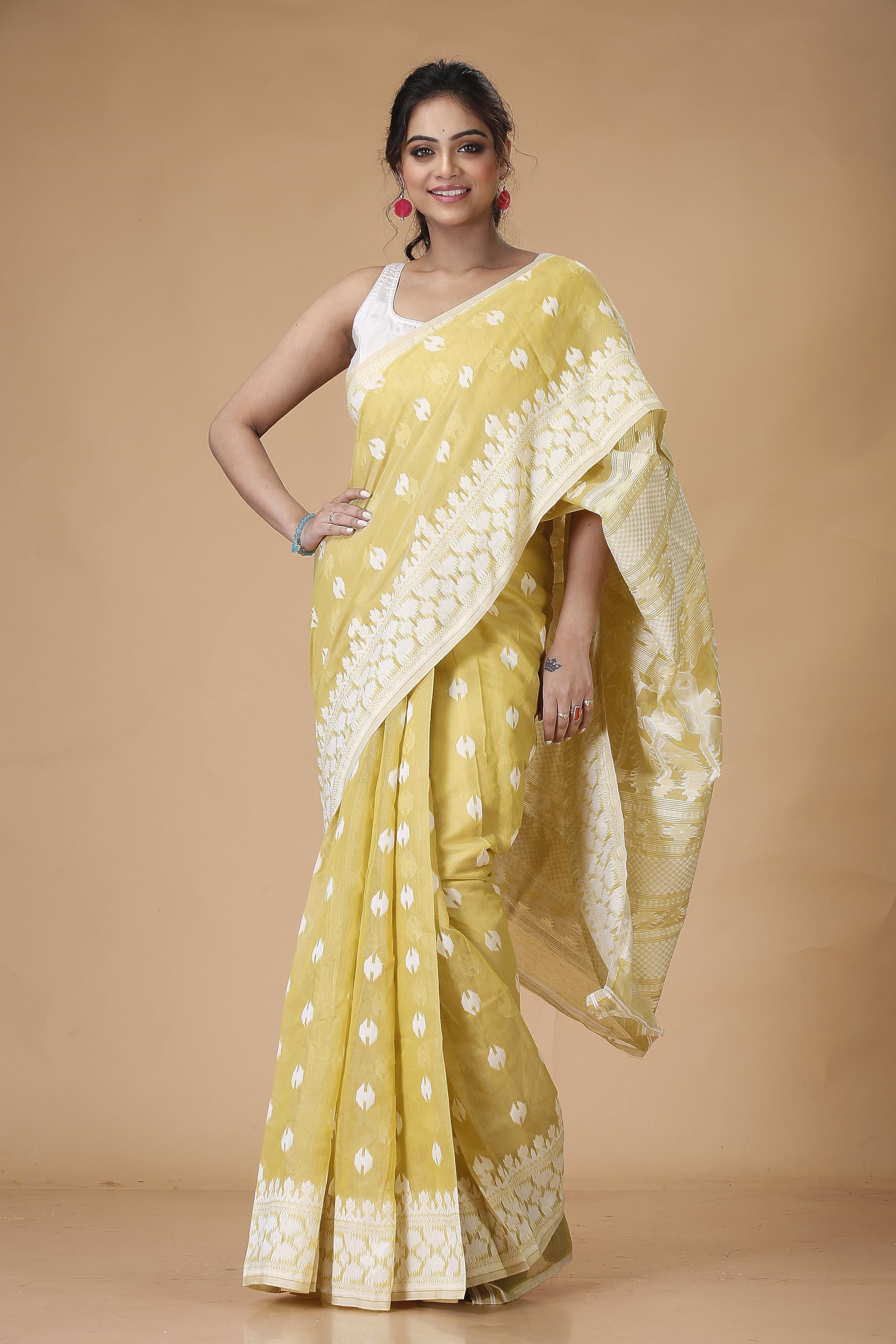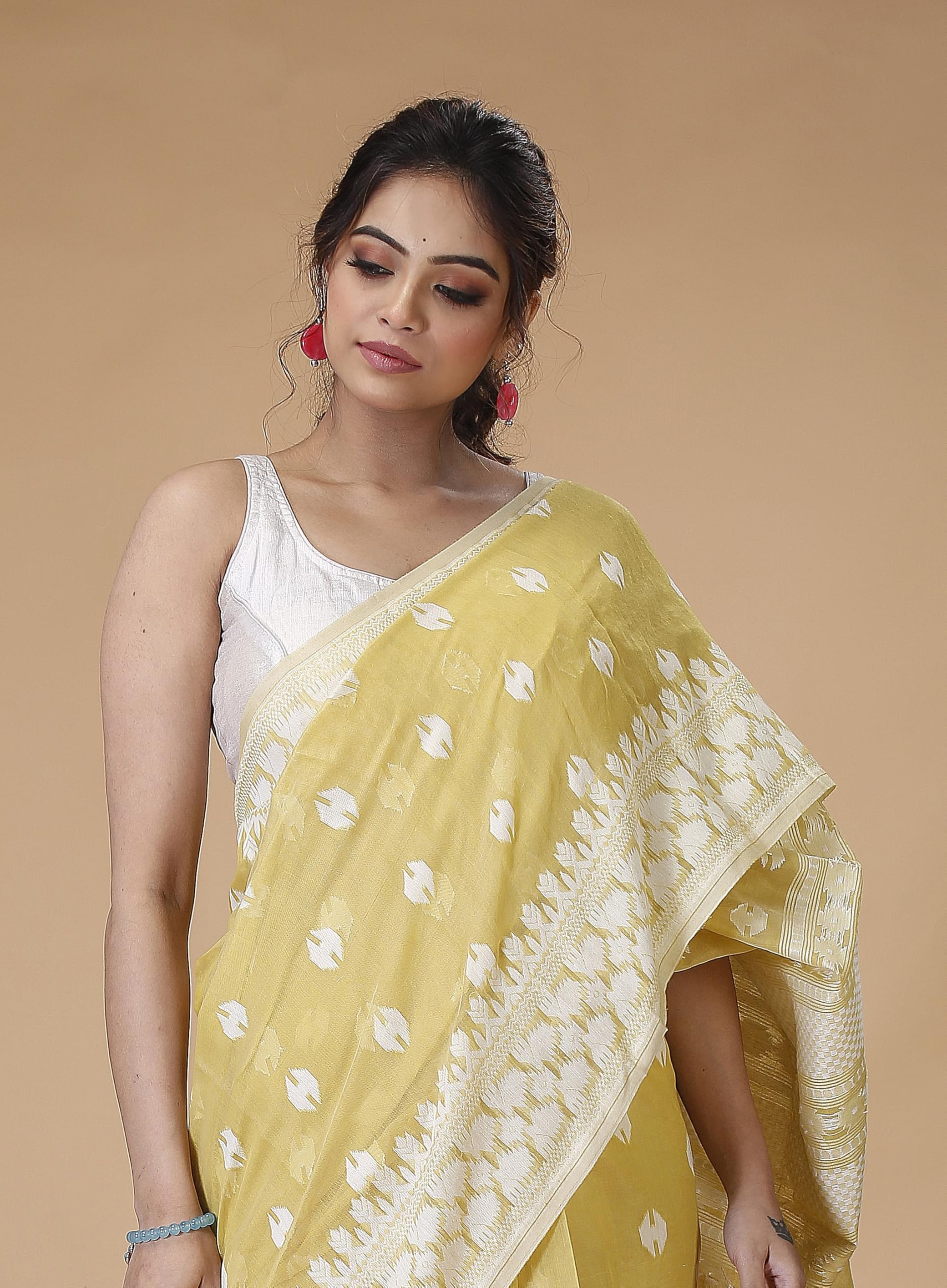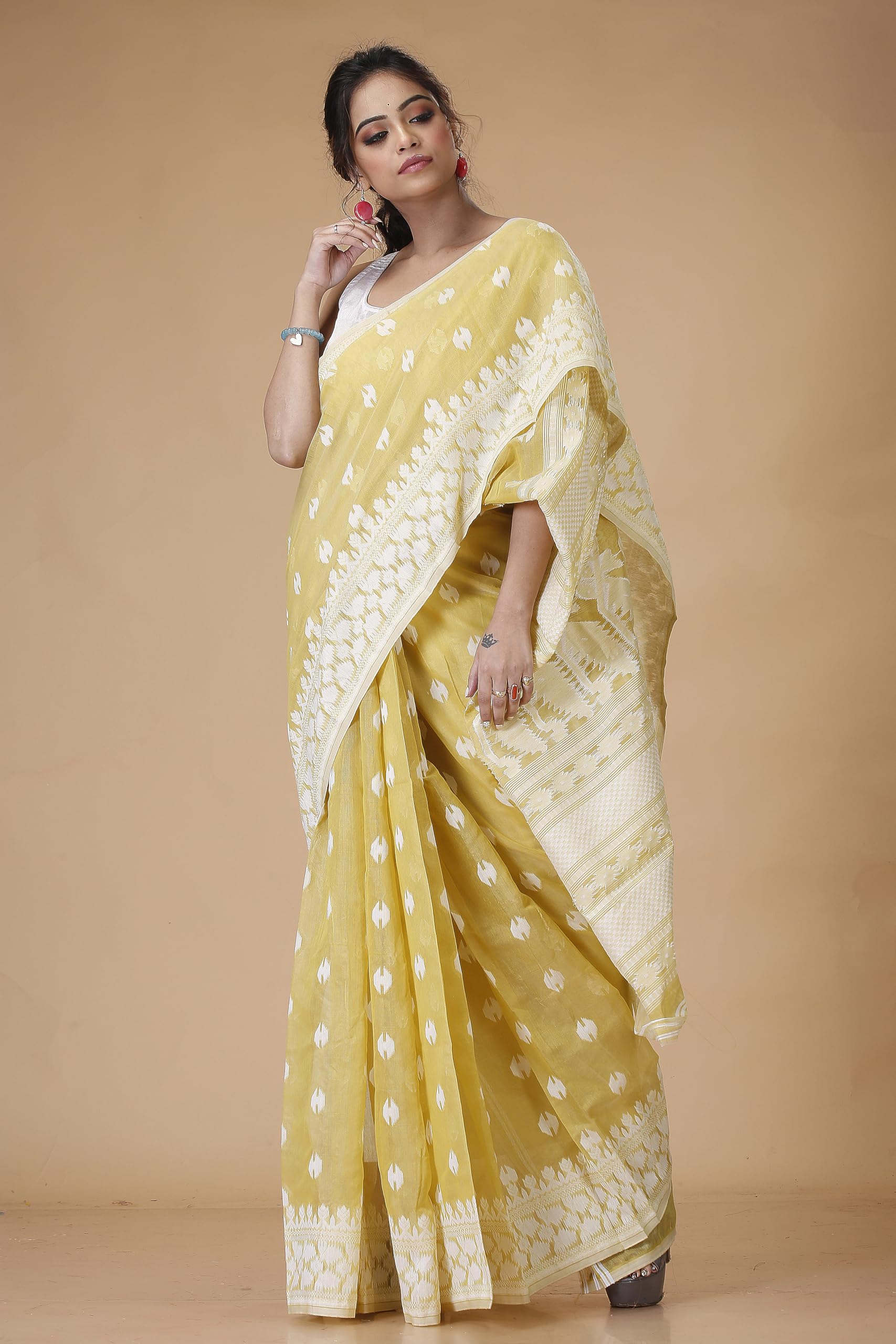 Part Number: Pallu Design-JAMDANI_Pale Yellow