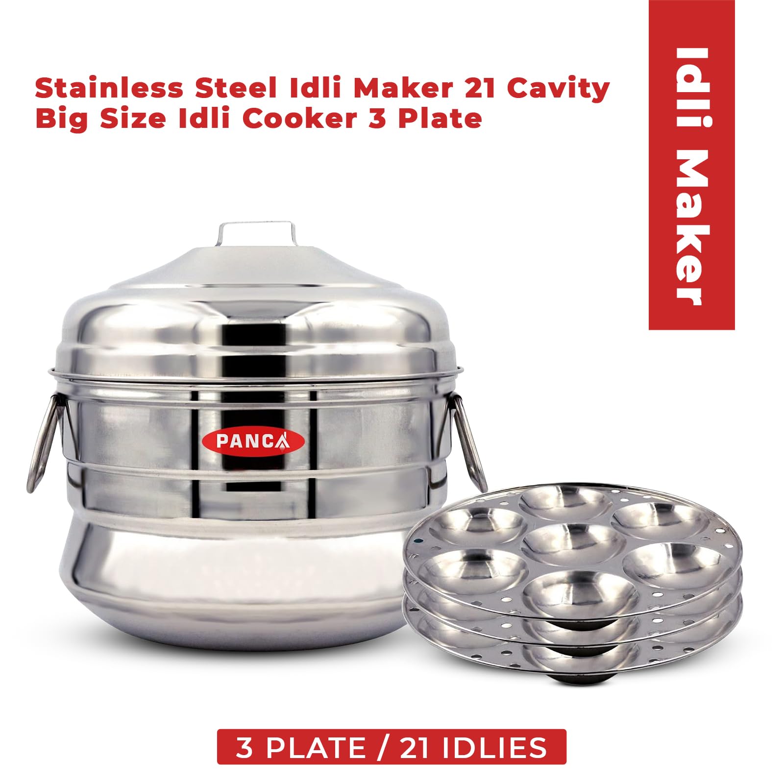 Details: PANCA Stainless Steel Idli Maker 21 Cavity Big Size Idli Cooker 3 Plate,Idli Panai Steamer Premium ( 21 Idli, 3 Plate)