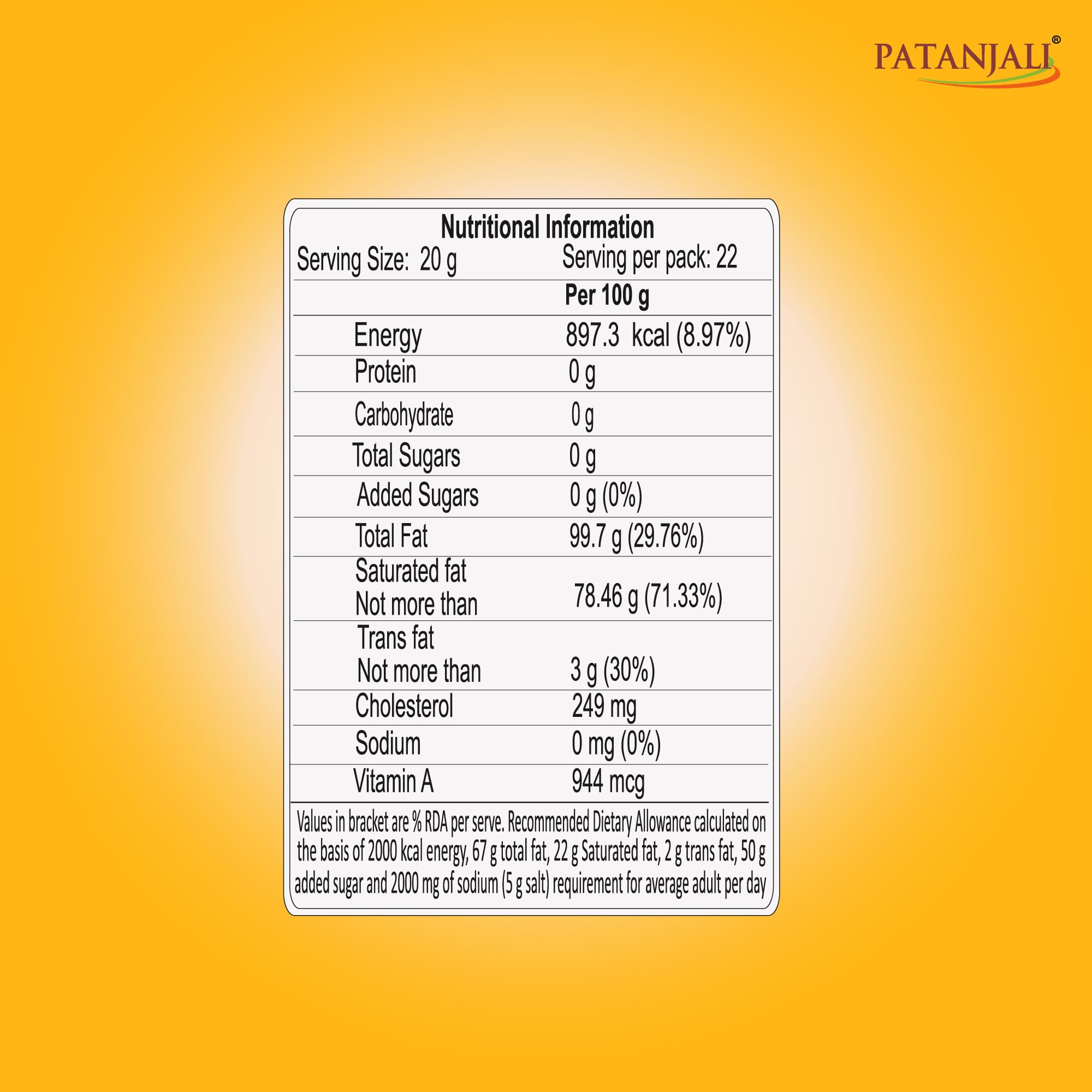 Details: Patanjali Cow Ghee represents the richness of tradition. It is pure and made from the best cow’s milk using age-old methods. Its golden color, smooth texture, and enticing aroma elevate the flavor of any dish. It’s versatile and nutritious, making it ideal for cooking, frying, and drizzling. It is packaged to preserve freshness, ensuring both convenience and satisfaction. Enhance your culinary experience with Patanjali Cow Ghee, and taste the essence of tradition in every bite.