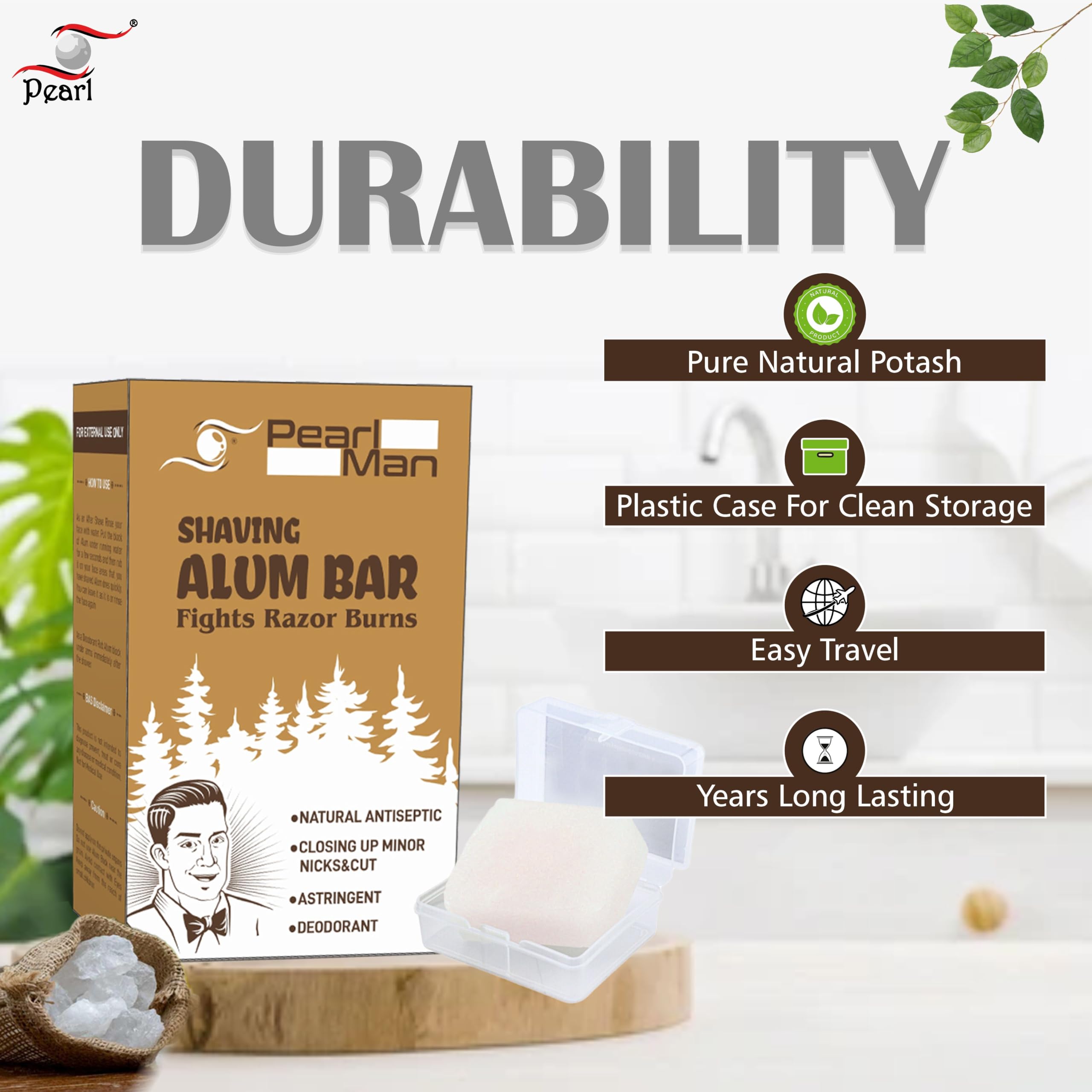 - ✅ Post-Shave Care Essential : This Shaving Alum Bar for Men (After Shave Alum Block, Alum Roll-On) is crafted to soothe irritation, prevent razor bumps, and reduce inflammation. Its versatility makes it suitable as a Fitkari Bar for Face, Phitkari for After Shave, or Padikaram Stone for Skin Women. A must-have grooming accessory for both men and women, it ensures a smooth and irritation-free shave.