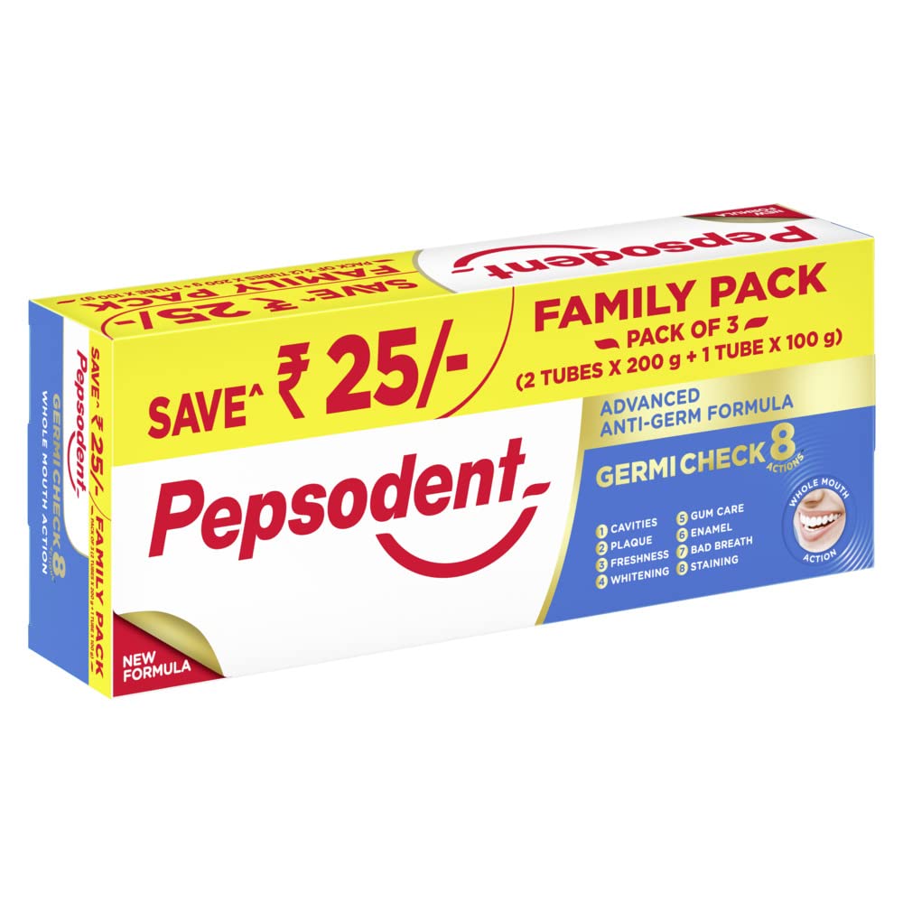 Details: Pepsodent Germicheck 8 Actions Toothpaste Choose New Pepsodent Germicheck 8 Actions Toothpaste For Your Family’S Whole Mouth Protection. It Contains An Advanced Anti-Germ Formula With Cpc Technology, Clove And Neem Oil That Fights Germs Not Only On Your Teeth But On Other Different Parts Of The Mouth As Well – Cheeks, Gums And Tongue To Give You 8 Scientifically Proven Whole Mouth Benefits. Step Up Your Family’S Dental Hygiene Protection By Brushing With The New Pepsodent Germicheck 8 Actions Toothpaste. It Gives You 8 Scientifically Proven Whole Mouth Benefits, Which Are (1)Cavity Protection, (2)Removal Of Plaque, (3)Fights Bad Breath, (4)Healthy Gums, (5)White Teeth, (6)Gives Fresh Breath, (7) Protects The Enamel, (8) Protects Teeth From Staining For A Good Oral Health And Protection For Your Entire Family – Follow A Good Dental Care Routine For Best Results: Brush Day And Night Or Twice A Day With Pepsodent Toothpaste And Toothbrush For Children Under The Age Of Six – Use A Pea Sized Amount Of Toothpaste And Brush Under Adult Supervision. Do Not Swallow. Remember To Change Your Toothbrush Every 3 Months And Visit Your Dentist Regularly. A Quality Product Of Unilever Dental Research’S Regd. Made In India. Recognised By Fdi World Dental Federation