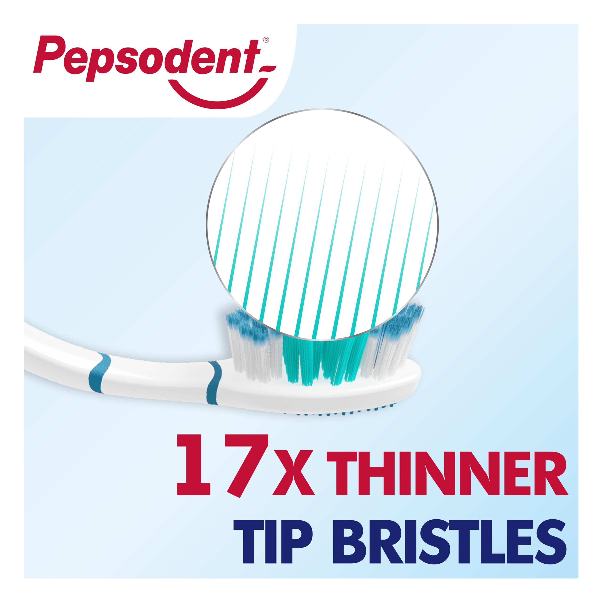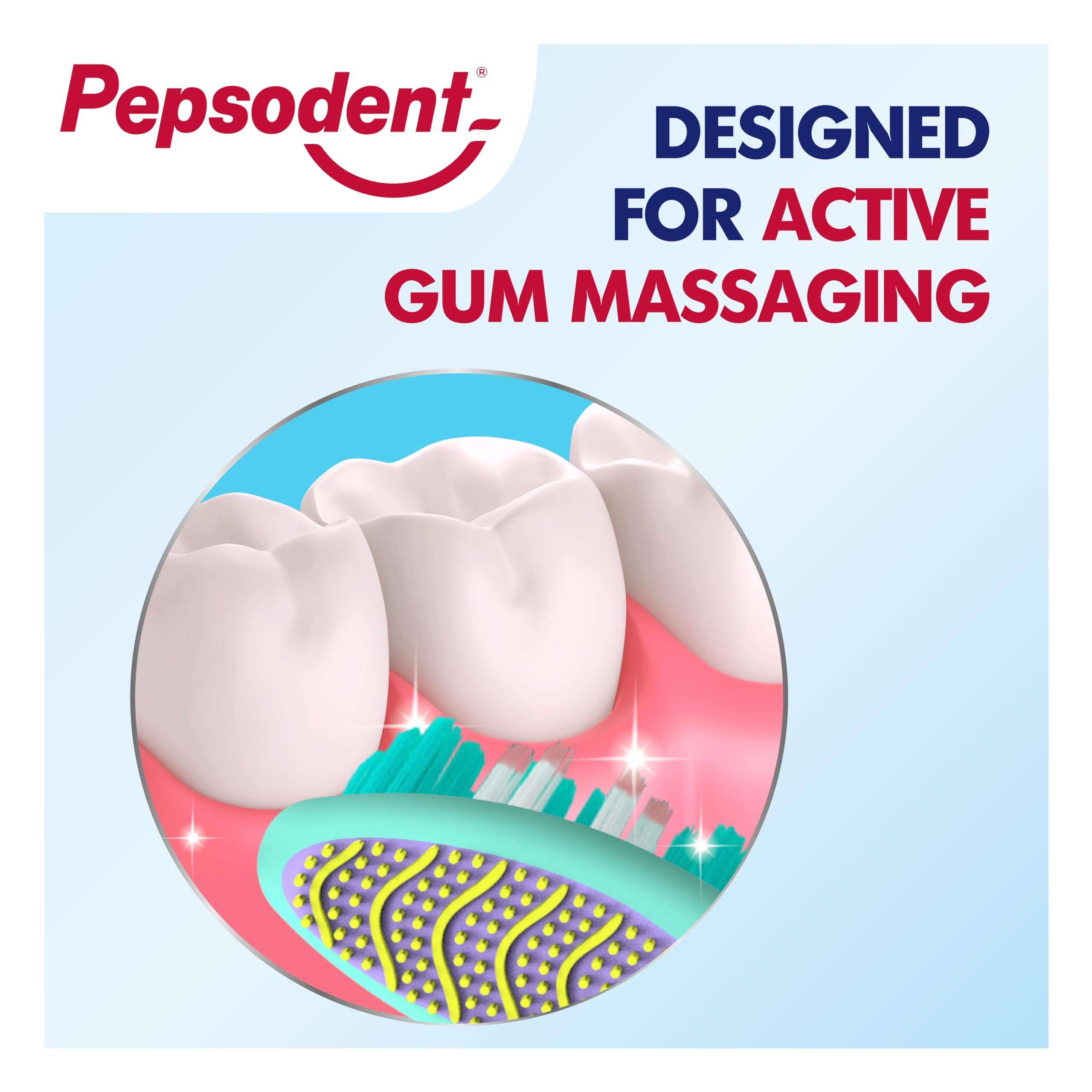 Details: The Pepsodent gum expert toothbrush offers specialized care for not only your teeth, but also your gums. Designed with expertise, the toothbrush lets you clean most difficult areas of your mouth with ease. It gently removes lodged food particles, so that your mouth remains healthy and also cleans out spots and stains from your teeth to make them pearly white. It helps to provide you a clean and long-lasting fresh breath each time you brush. This toothbrush cleanses your tongue effectively, thus keeping your entire mouth healthy and fresh all the time. This pack includes 3 toothbrushes of pepsodent gum expert.