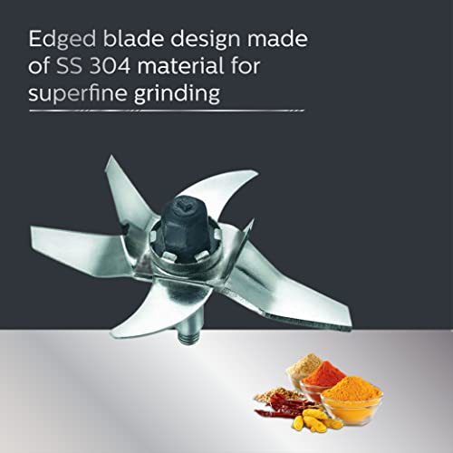- BLADES: Edged blade design made of SS304 material for superfine grinding of toughest ingredients, masalas, chutneys, shakes and purees,