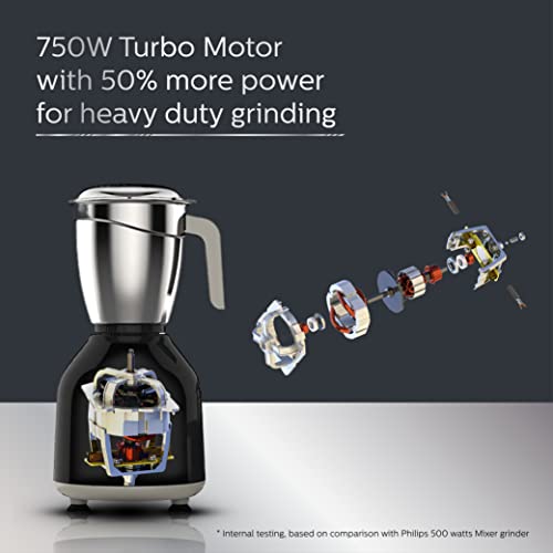 - MOTOR: Powerful 750 W Turbo Motor with 50% more power for heavy duty grinding