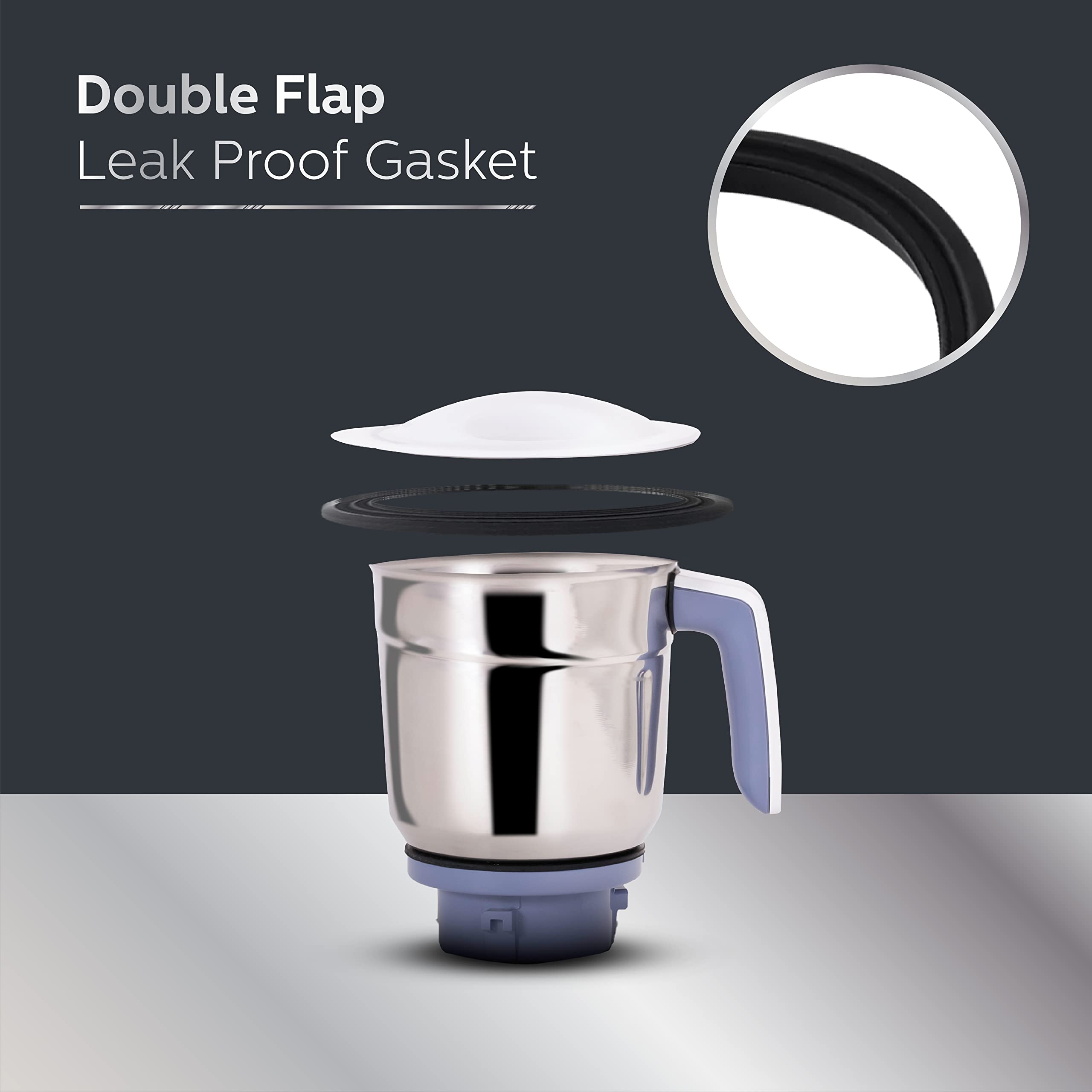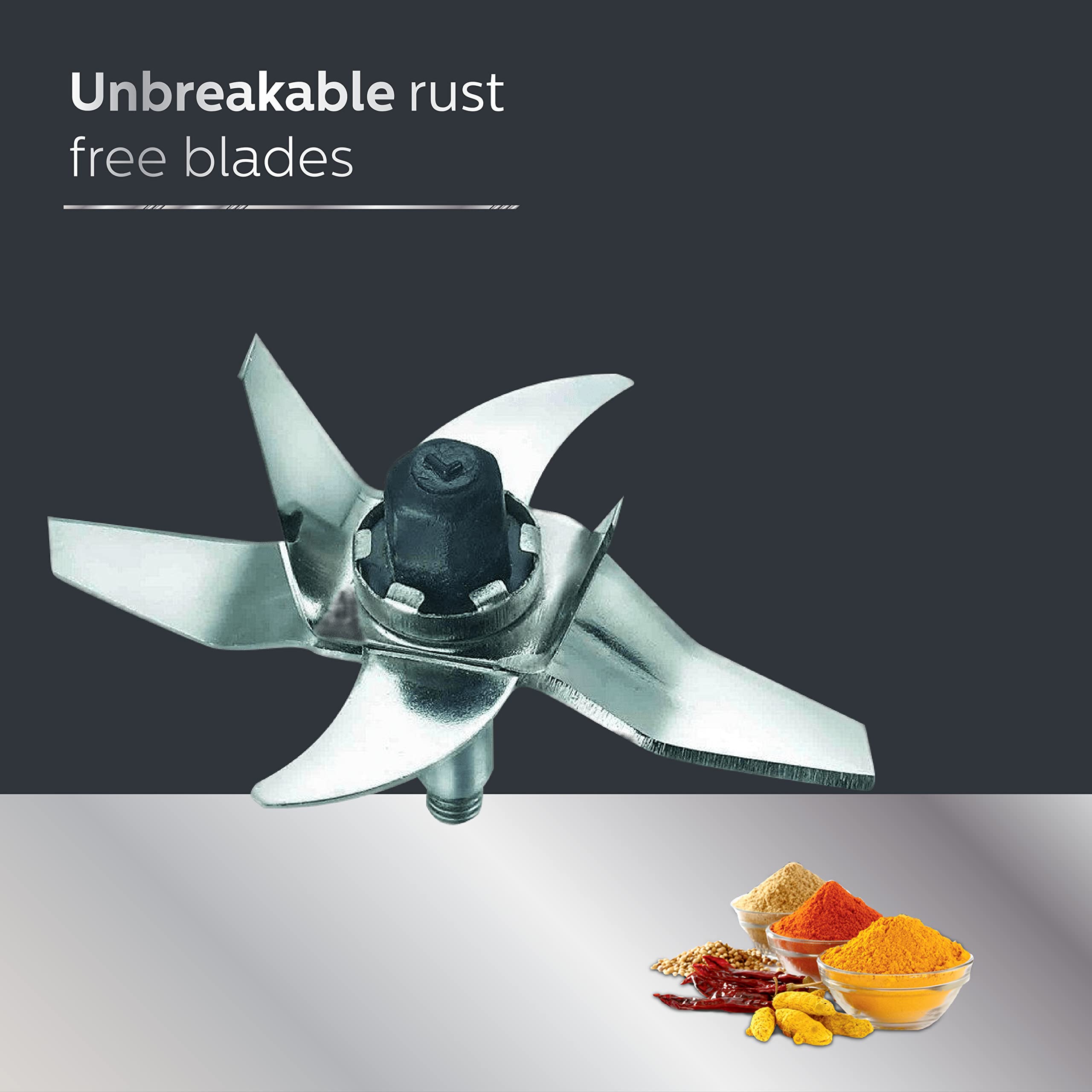 - No of Jars: 4; Jar Size: Wet Jar (1.75 Litres), Blender Jar with pulp extractor (1.5 Litres), Multipurpose Jar (1 Litre), Chutney Jar (0.5 Litres); Jar Material: Stainless Steel; Body Material: ABS Plastic; Blade Material: Stainless Steel; Speed Control: 4 Speed Settings.RPM Motor- No load: 19500 rpm