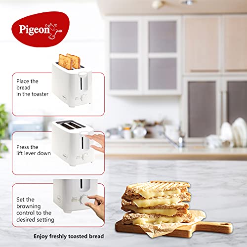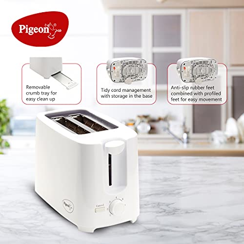 Details: Are the most of your mornings being spent on browning bread slices on the tawa? Forget making toasts on the tawa and get this pop-up toaster from Pigeon. Automatic pop up toaster While you busy yourself with getting ready for work, the toasts will take care of themselves. Browning control This toaster is equipped with 6 levels of browning control to help you get perfectly browned toasts according to your preferences. Stylish appliance Your kitchen is sure to look smart and stylish when this brightly coloured and modish pop up toaster is placed on the counter. Product Description Get this Pigeon pop-up toaster and transform those plain slices of bread into delicious toast, and put an end to your daily struggle of what to eat for breakfast. Variable Browning Control Whether you want fully browned toast to eat with your morning cup of joe, medium browned toasts to make mouth-watering sandwiches or mildly browned toasts to eat with Nutella, you can brown the bread slices as per your taste requirements, thanks to its 6-level browning control feature. Automatic Pop-up Just put two slices of bread into this toaster, and continue with your morning work without worrying about burning the slices as this toaster comes with an automatic pop-up feature. Shock proof this pigeon pop-up toaster features a shock-proof body and is ergonomically designed for ease of use and safety.