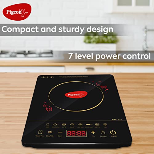 Pigeon Acer Plus Induction cooktop helps cook food faster and efficiently as compared to your normal gas stove. With unique tact switch for convenience and 8 pre-set menus, you can enjoy compact cooking and hassle-free food preparations. With a modern touch to classic induction, this induction Stove makes the cooking effortless, cooks food faster, steals nutrition and prevent vitamin loss. This cooktop is programmed for both western and Indian cooking. The Pigeon Acer Plus Induction cooktop has 8 Pre-set menus suitable for Indian and western style cooking. The menu includes boil, fry, curry, dosa/roti, idli, milk tea and manual. These pre-set menus work wonderful for common dishes or dishes which require same pattern of cooking that saves time and efforts. It comes with a digital LED display which is not only good to look at but is also very helpful when you are using it to cook.