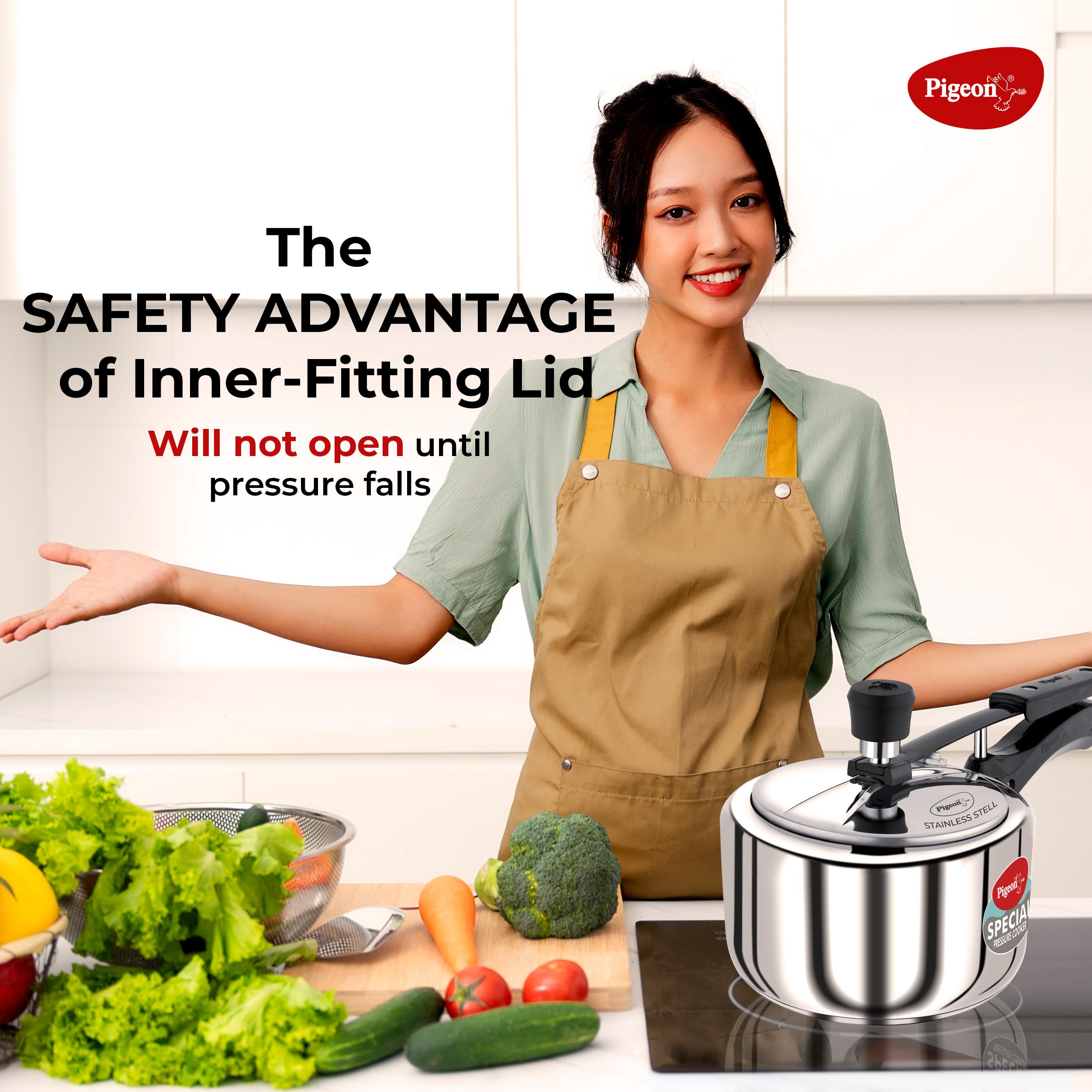 - Pigeon Stainless Steel Inner lid Pressure Cooker 2 litre come with ergonomic Durable Handle and it is Dishwasher Safe