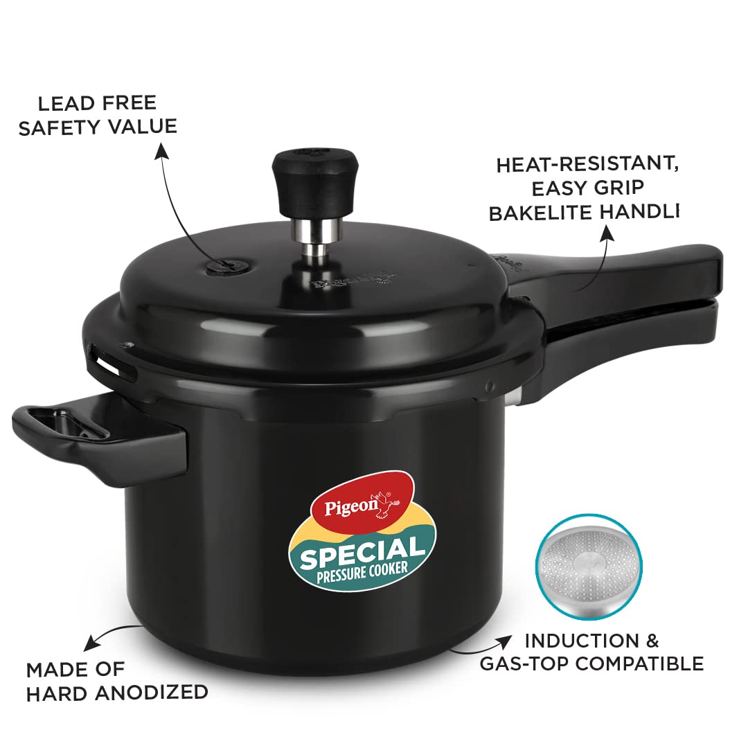 - Hard Anodised Cooker combo 2,3,5 Litre is Made from High Grade Vargin Aluminium Conforming to IS 21:1992;The Main highlights of cooker combo are Ergonomic User Friendly handle. Toxin and stain resistant, Sturdy Hard Anodised Body, Precision Weight Valve, Metallic Safety Plug