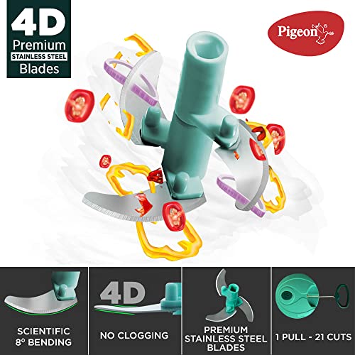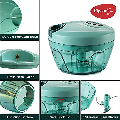 - Unique string function to chop vegetables and fruits with ease,Eco-friendly design, no electricity required,Made from unbreakable ABS plastic for long-lasting use, Material: Polypropylene (PP),Sturdy 3-blade design made from Stainless Steel, As this chopper by Pigeon can be opened and detached easily, cleaning is an easy task using lukewarm water, mild detergent and a soft cloth.Power Requirement: Manual