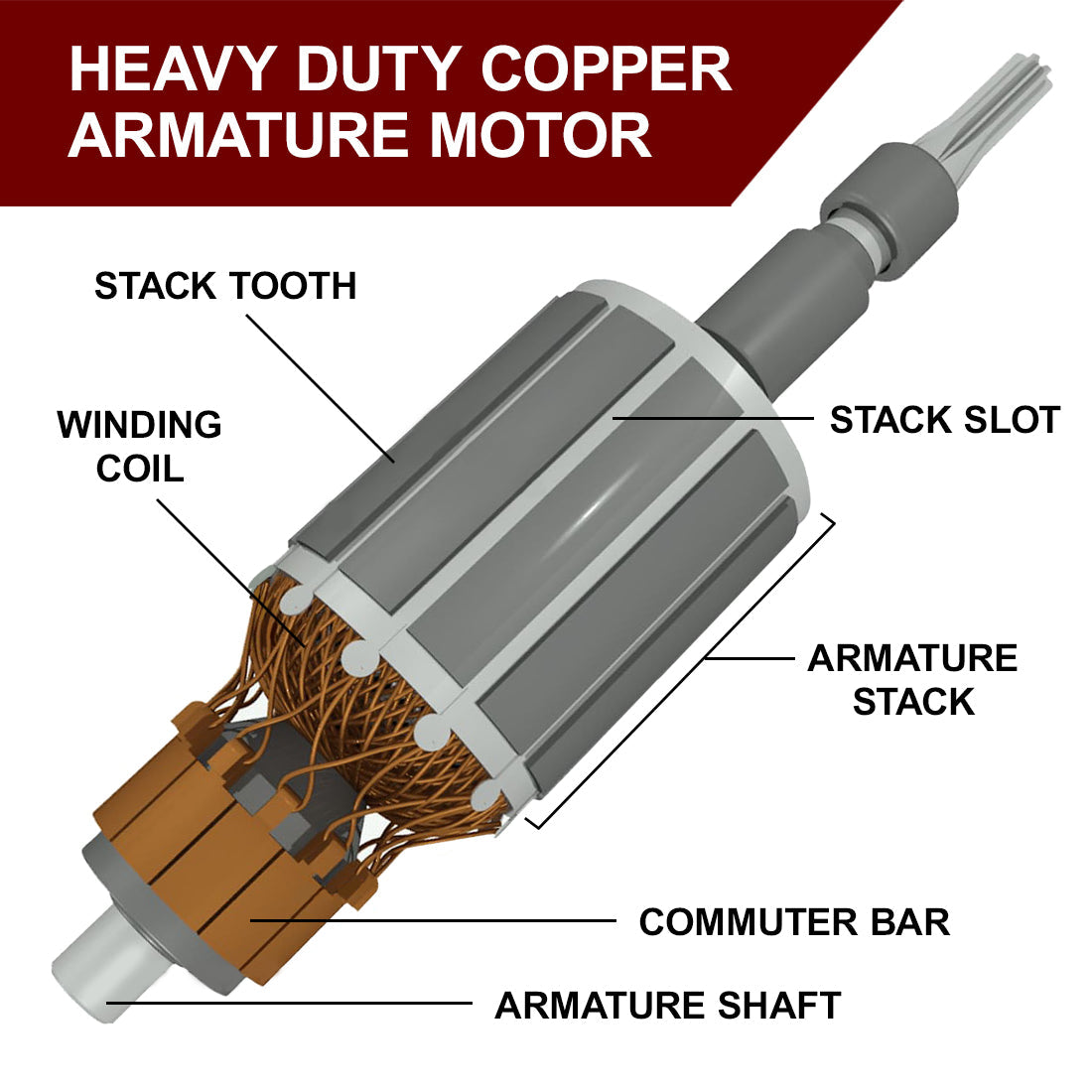 - 500W heavy-duty copper armature motor housed in our unique tower shaped design