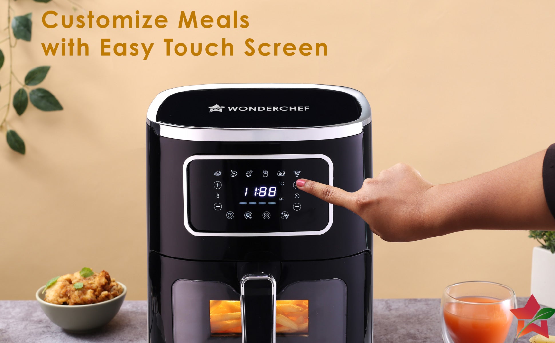 Experience healthier cooking and effortless meal preparaon not just for family, but for all those get-togethers too! Wonderchef Planum plus Air Fryers come with a generous capacity of 5 liters so you can cook large quanes at one go! Air fry, bake,roast or grill healthy food items and make your meal mes nutrious and tasty!