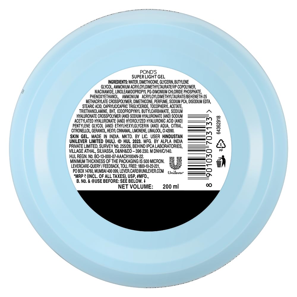 Details: Looking for a gel moisturizer that can keep your skin hydrated for 24 hours? Look no further than the Ponds Super Light Gel 247gm! This gel based moisturizer for oily skin is perfect for all seasons and is enriched with Hyaluronic Acid, Vitamin E, and Glycerine to provide deep nourishing care for your skin. Unlike regular creams, the super light formula of Ponds light gel absorbs quickly into the skin, leaving no sticky feeling behind. The gel moisturizer helps restore your skin’s moisture balance, making it soft, smooth, and moisturized. The Hyaluronic Acid in the Ponds gel formula improves your skin’s natural moisture-holding capacity, while the non-oily texture keeps oiliness and stickiness at bay. The 24-hour moisture lock technology in the Ponds gel moisturizer ensures that your skin stays hydrated all day long, while its lightweight formula spreads quickly on the skin, making it easy to apply. This gel based moisturizer is perfect for all skin types and can be used throughout the year, even in the scorching summers. So say goodbye to your moisturizing woes with Pond’s Institute’s lightest gel formula – the all-new Ponds Super Light Gel. Get ready to enjoy soft, smooth, and glowing skin all day long!