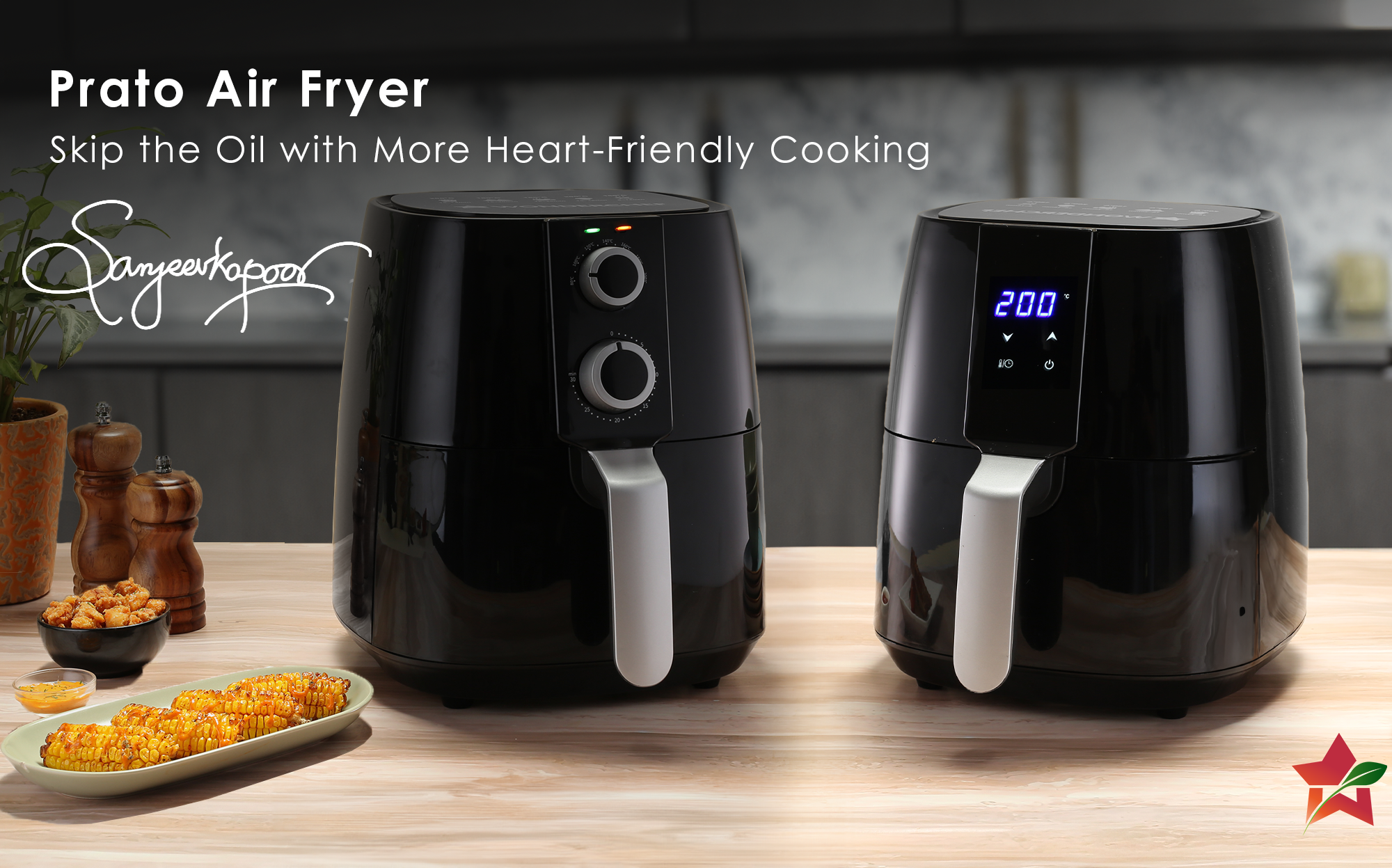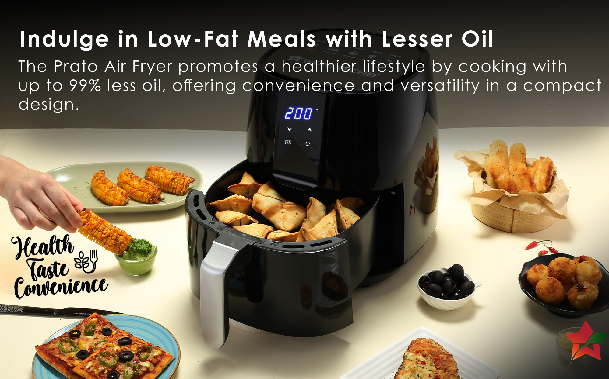 - RAPID AIR TECHNOLOGY: Prato Air Fryer utilizes innovative rapid air technology to circulate hot air rapidly and evenly around the food, resulting in crispy and evenly cooked meals. Whether you want to fry, roast, bake, or grill, the rapid air technology provides you with versatile cooking capabilities for a wide range of dishes.