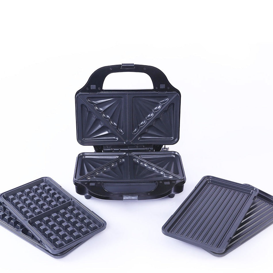 - VERSATILE 3 IN 1 SANDWICH MAKER: Designed to cater to all your breakfast needs; this multi-purpose machine features three detachable plates for sandwiches, grilling, and waffles.