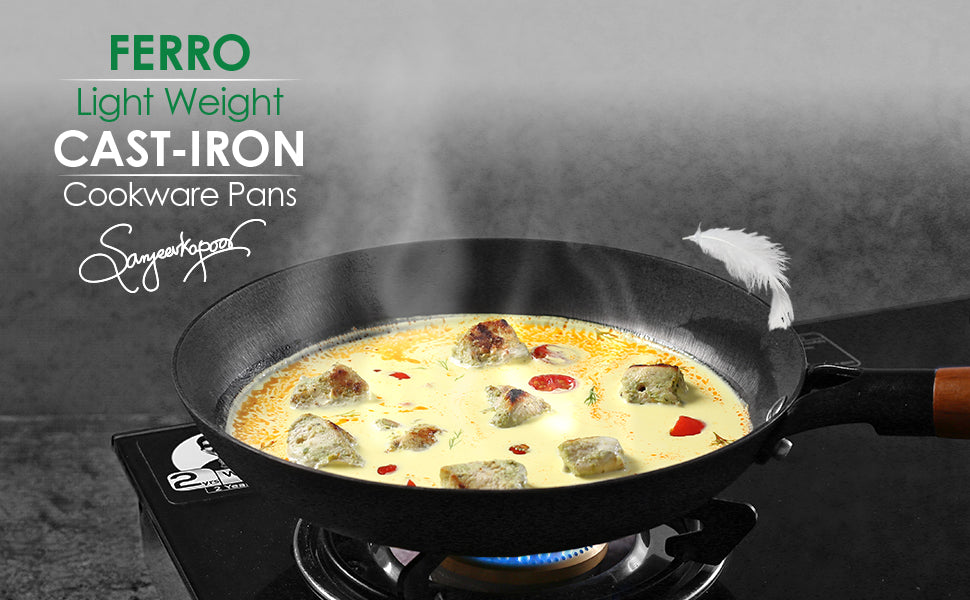- Ferro Light Weight Pre-seasoned Cast-iron Cookware: Healthy cast-iron pans in a lighter, easy-to-use form. With a better finish and superior quality, they elevate your culinary experience with confidence and ease!
