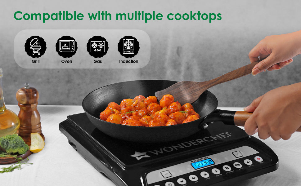 - Compatible with Multiple Cooktops:Â Ferro Cookware is compatible with multiple cooktops like gas stove, induction stove, and electric cooktop.