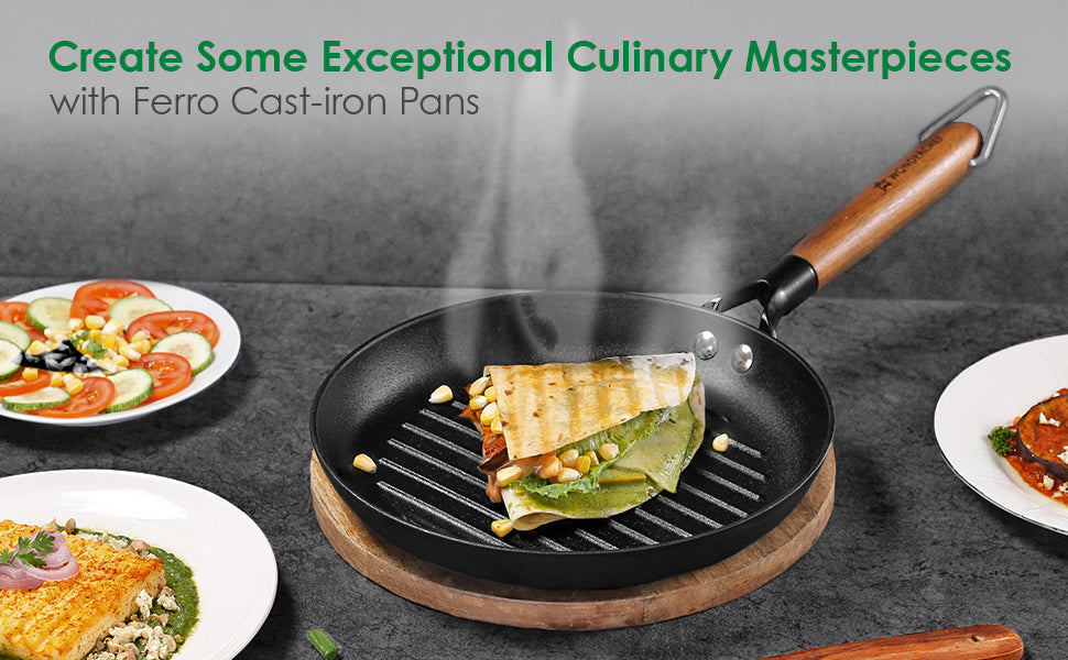 - Ferro Light Weight Pre-seasoned Cast-iron Cookware: Healthy cast-iron pans in a lighter, easy-to-use form. With a better finish and superior quality, they elevate your culinary experience with confidence and ease!