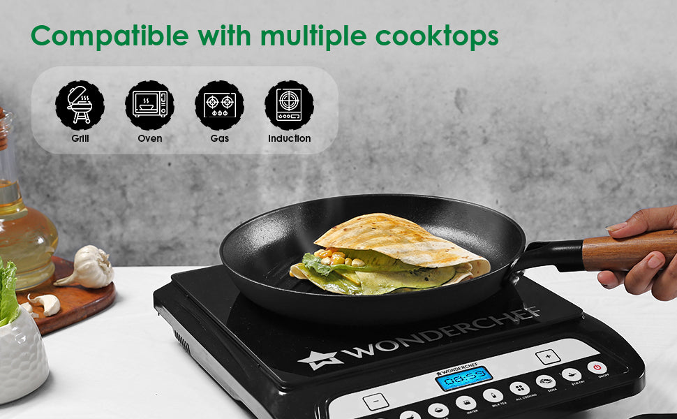 - Compatible with Multiple Cooktops:Â Ferro Cookware is compatible with multiple cooktops like gas stove, induction stove, and electric cooktop.