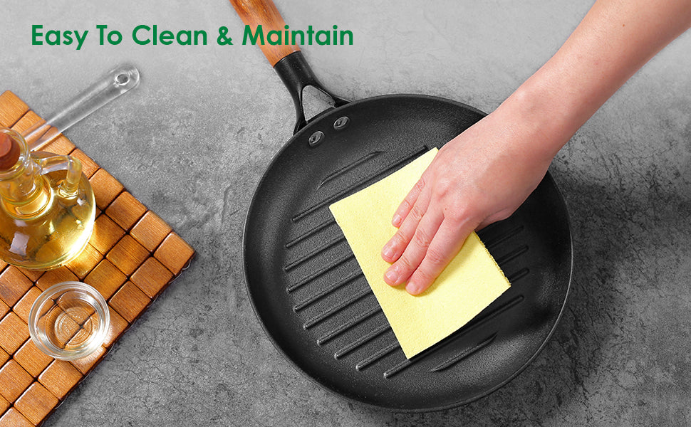 - Elegant Acacia Wooden Handles: The handles made from real Acacia wood don’t heat up while cooking and give a strong grip to the pans, making them convenient to use.