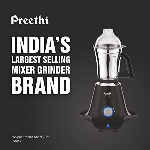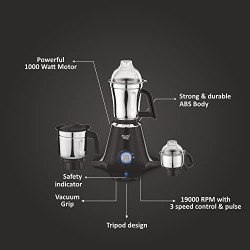 Preethi Taurus Pro MG-256 Mixer Grinder, Black, 3 Jars,Powerful 1000 Watt motor for perfect grinding in 90 sec, Shock proof ABS Plastic Body, 5 Yr Motor Warranty & Lifelong Free Service