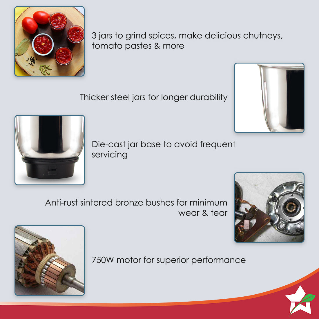 - Premium Mixer Grinder – Blue has unique technical features that make it the most durable mixie.