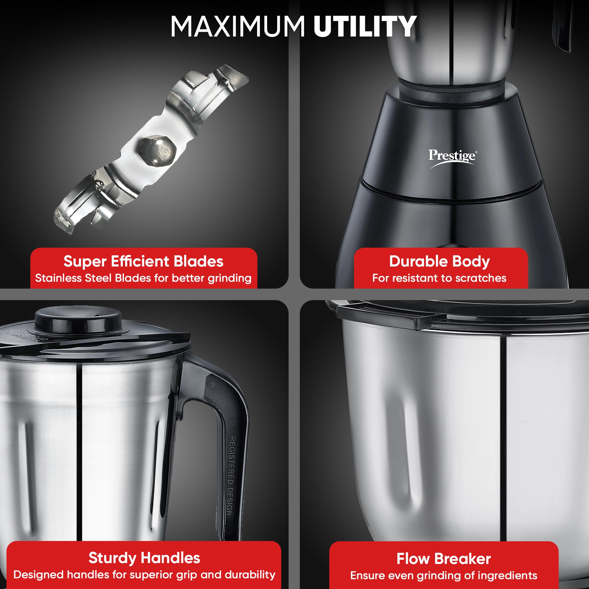 - CAPACITY of JARS: Wet Grinding Jar: 1.2L, Dry Grinding Jar: 700ml and Chutney Jar: 400ml, grinds tough ingredients with ease.