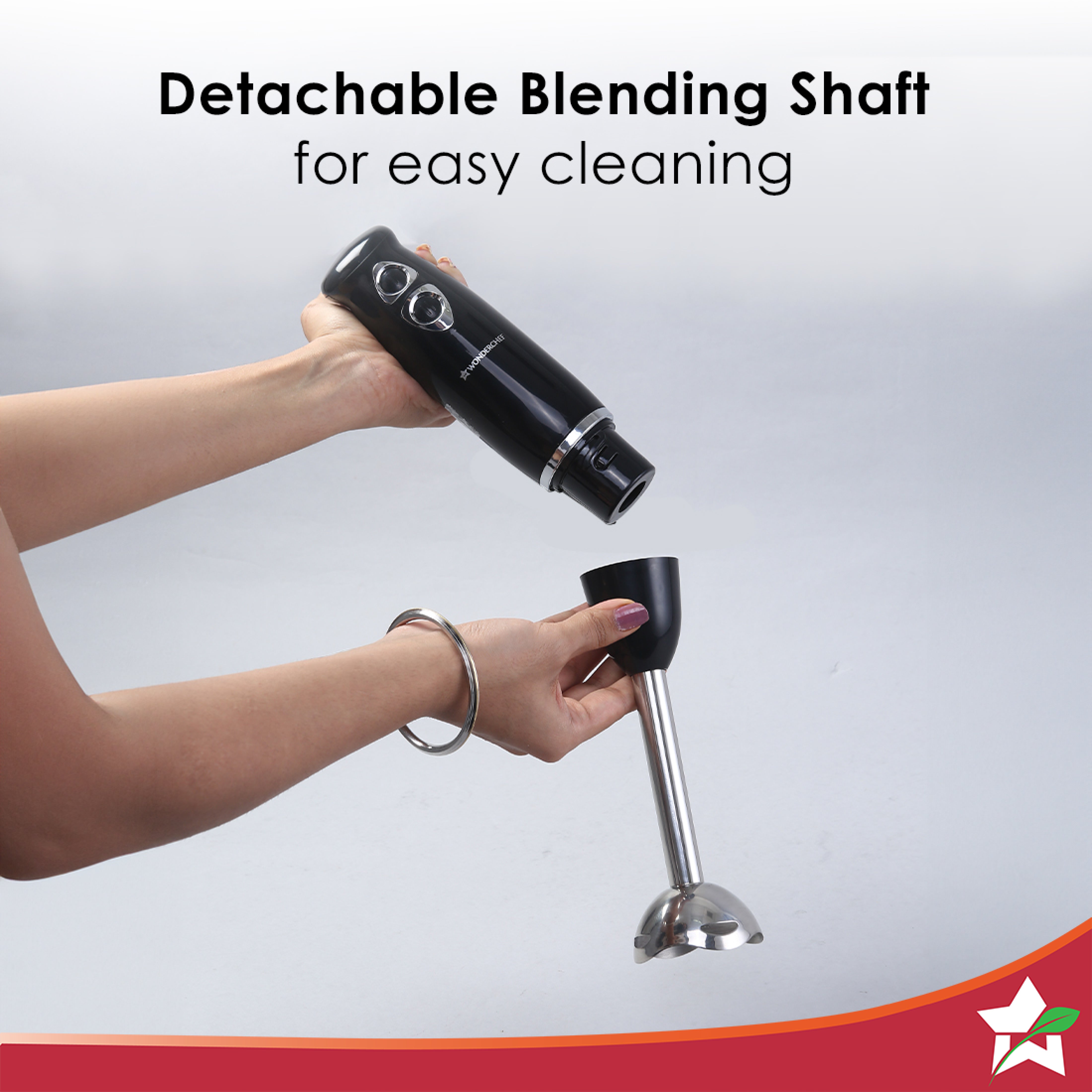 - Detachable stainless steel shaft.