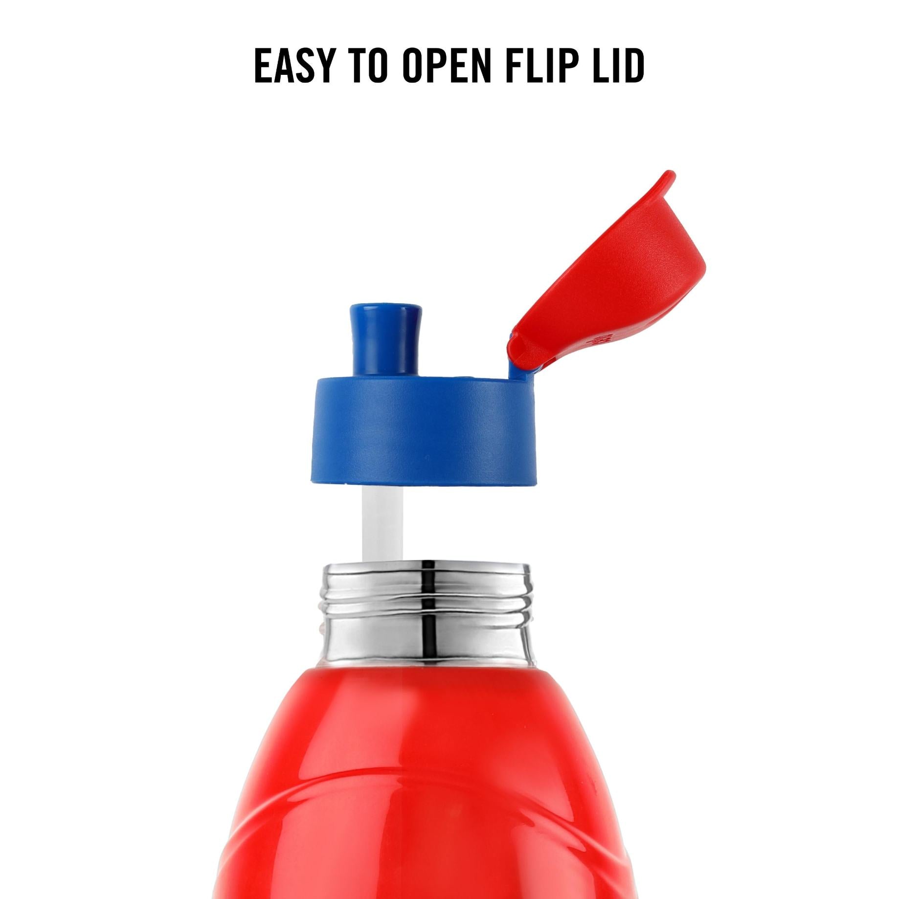 Introducing the Puro Steel-X Kids Zee 600 by Cello Kidzbee – the ultimate companion for your school-going superheroes! With a generous 540ml capacity, this insulated water bottle keeps beverages ice-cold, ensuring your child stays refreshed throughout the day. Designed for active kids, its BPA-free plastic exterior showcases a cool Spiderman motif in vibrant Blue or Red. The flip-top lid with a covered sports mouth guarantees spill-proof sipping, while the convenient neck strap makes it effortless to carry. Whether it’s for school or a fun picnic, this bottle is the perfect hydration partner. Choose Puro Steel-X Kids Zee 600 for a leak-proof, stylish, and chilled experience.