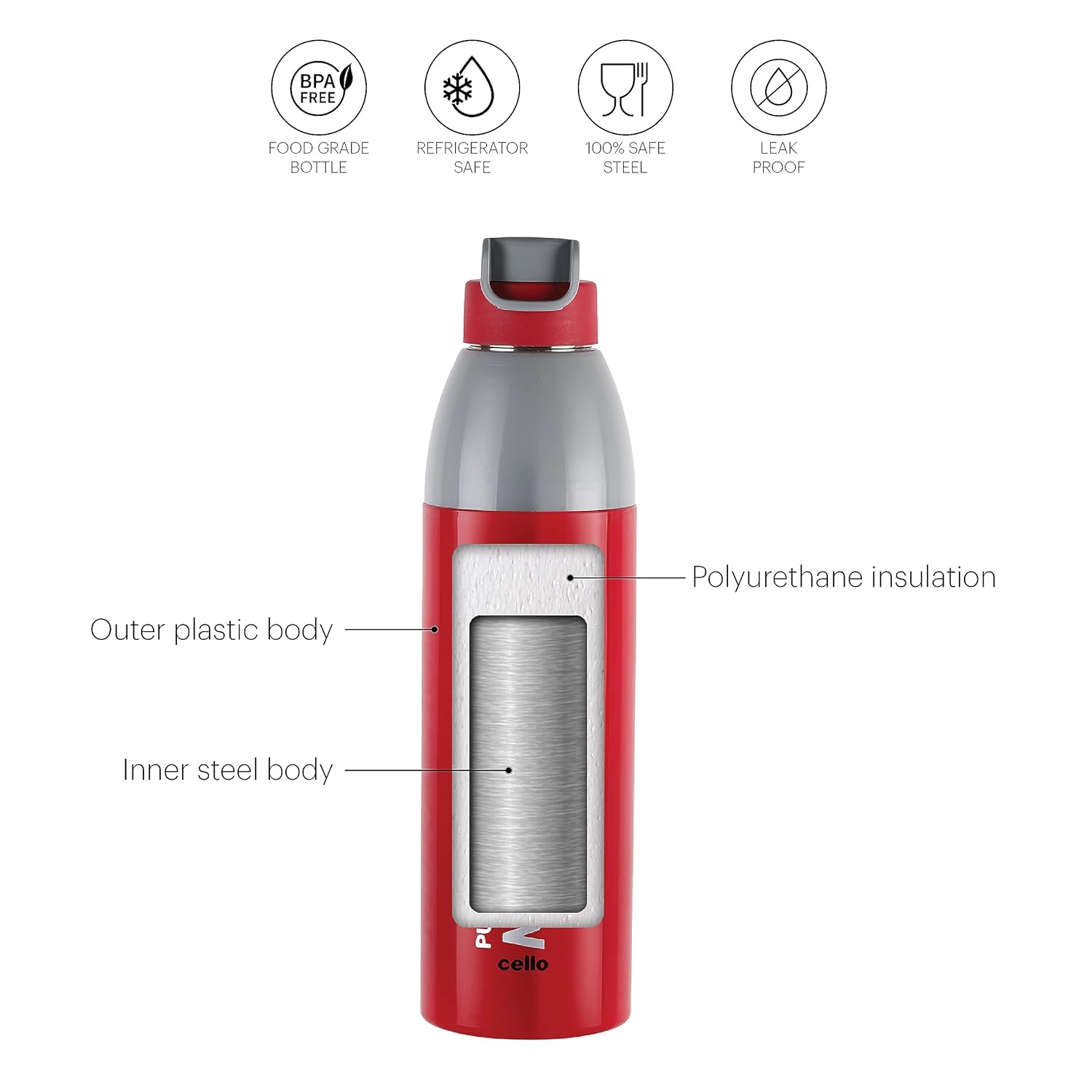 Puro Marathon Inner Steel is an Outer Plastic Bottle, engineered with a Polyurethane Foam insulation layer to maintain the perfect temperature for your cold beverages wherever you go. With its leak-proof design and flavor retention technology, this bottle ensures every sip is as refreshing as the first, making it an ideal companion for outdoor activities, workouts, or social gatherings. Crafted from premium 18/8 stainless steel, it’s built to last and resistant to oxidation, ensuring your drinks stay fresh without any metallic aftertaste. Whether you’re hitting the trails, sweating it out at the gym, or simply enjoying a picnic with loved ones, the Puro Marathon Bottle keeps your drinks at their optimal temperature while keeping you hydrated and satisfied.