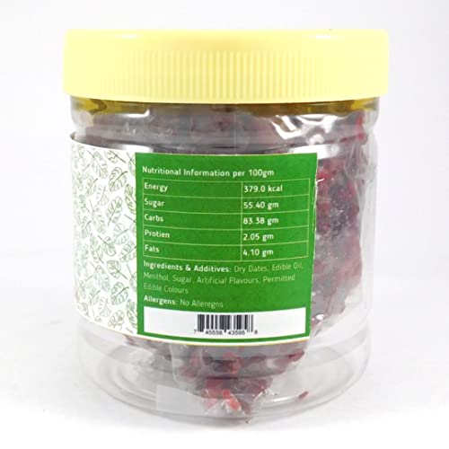 - A natural supari mouth freshener made from Dry dates,sugar,menthol, edible oil,artificial flavour,permitted edible colours.