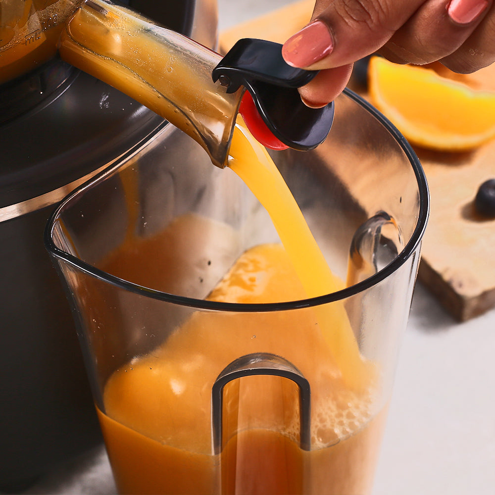 The convenient plug-on container prevents juice from dripping and enables precise pouring when needed.