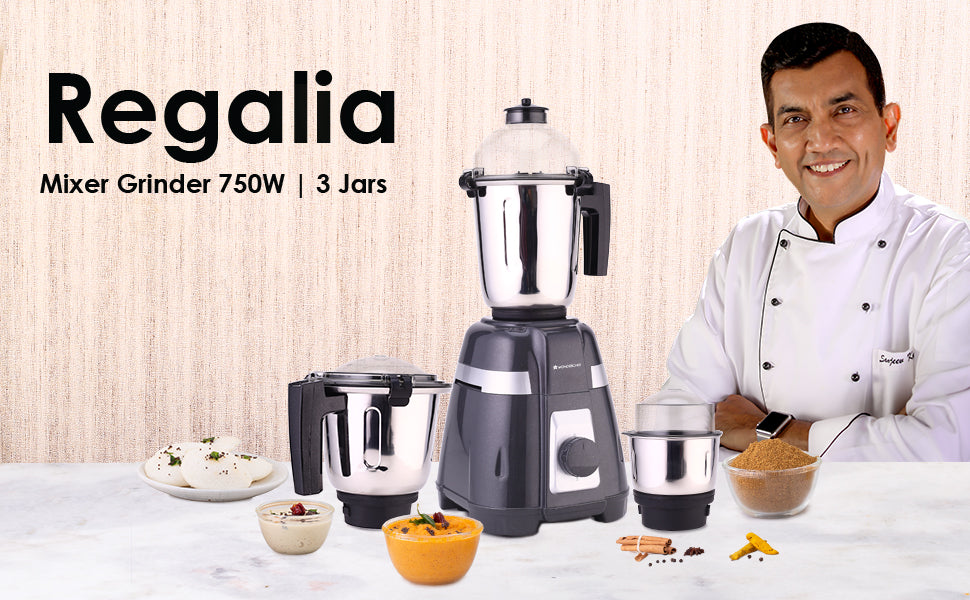 very home-maker wants a reliable mixer-grinder which does not break down again and again and lasts for years. Presenting Regalia Mixer Grinder the most reliable mixer by Wonderchef. It comes in a stunning black and silver combination that will instantly add a touch of sophistication to any kitchen. The powerful and efficient 750 watts motor made with heavy-duty copper armature provides optimum performance, get ready for effortless cooking with Wonderchef Regalia Mixer Grinder.
