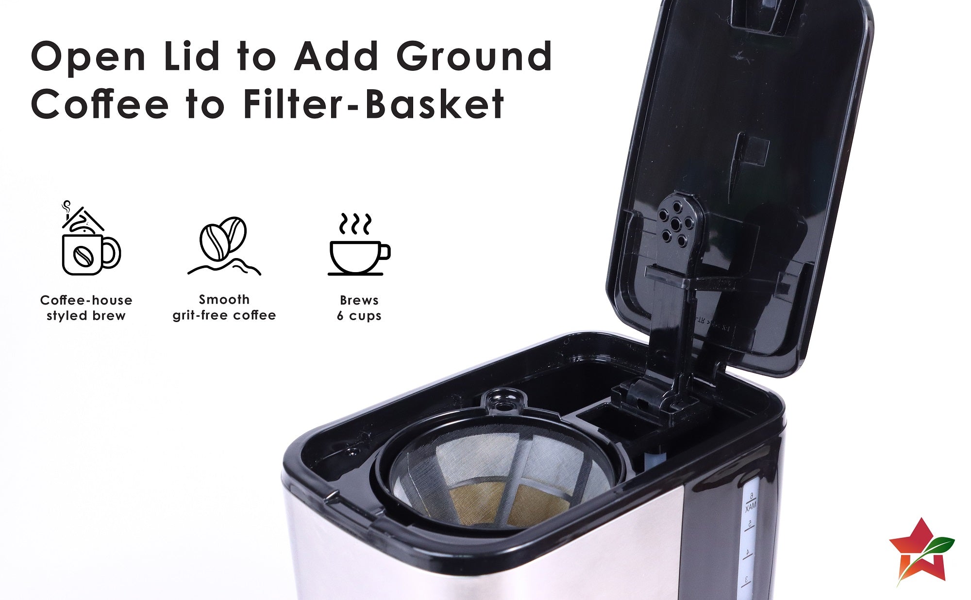 - CONVENIENT TO USE: Simply add water to the machine, the ground coffee powder to the filter basket and brew delicious cups of aromatic coffee. The water level indicator enables easy filling, eliminating any guesswork. Â