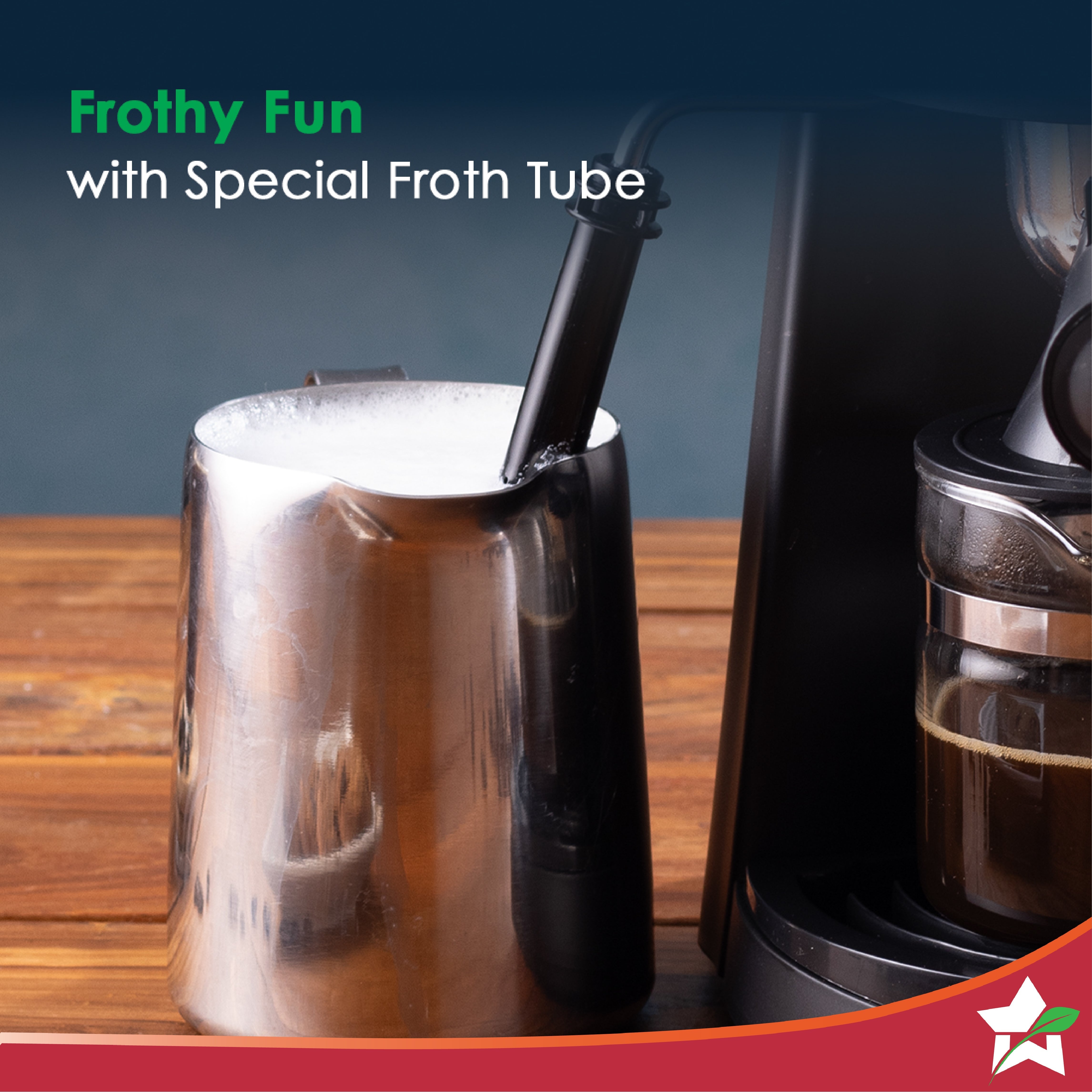 - Steam Fother:Â Use the specially designed steam tube to froth your milk and make every cup of coffee unique with your own touch of creativity.Â