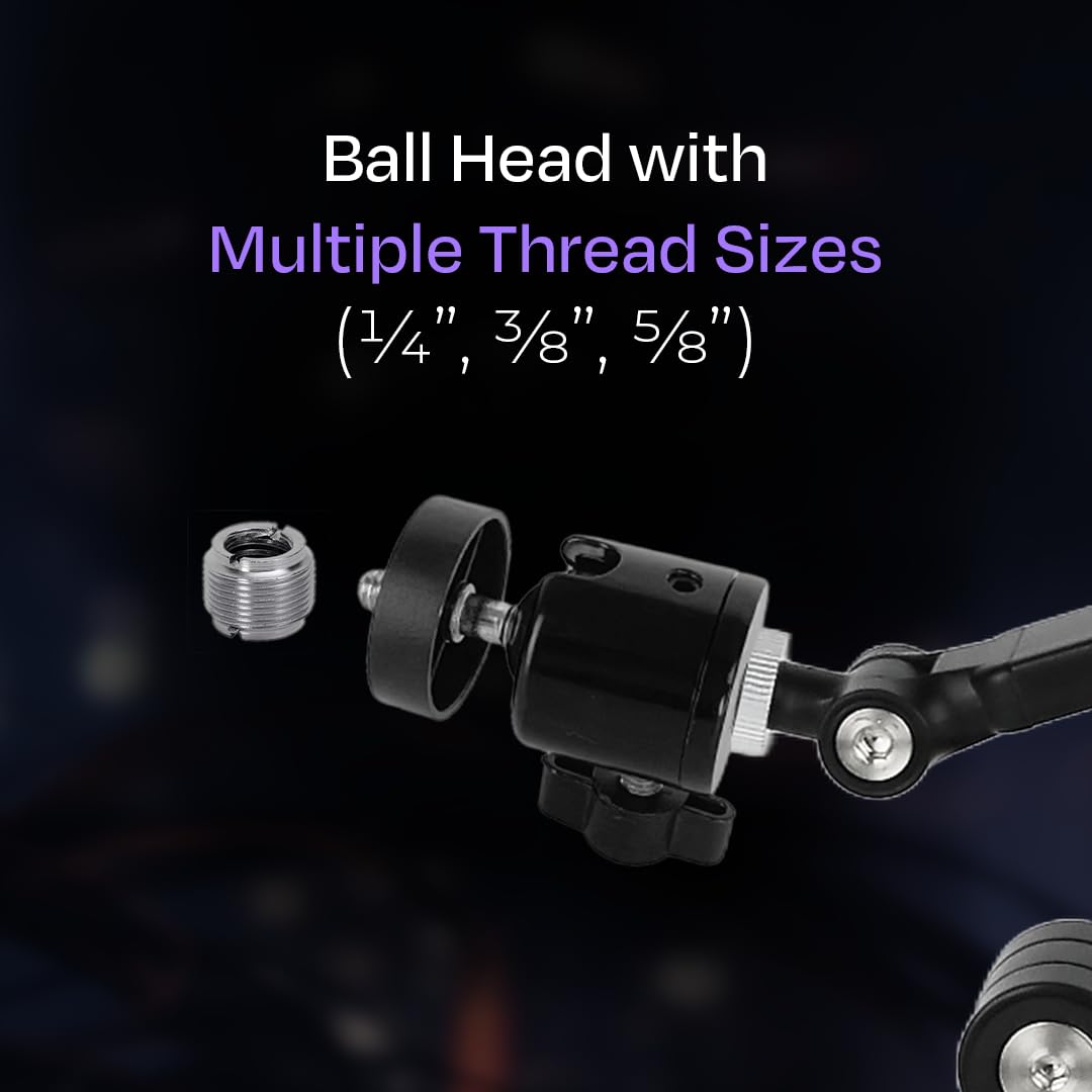 - 🔄 Adaptable Ball Head: Compatible with multiple thread sizes (¼”, ⅜”, ⅝”), allowing easy attachment of various devices.