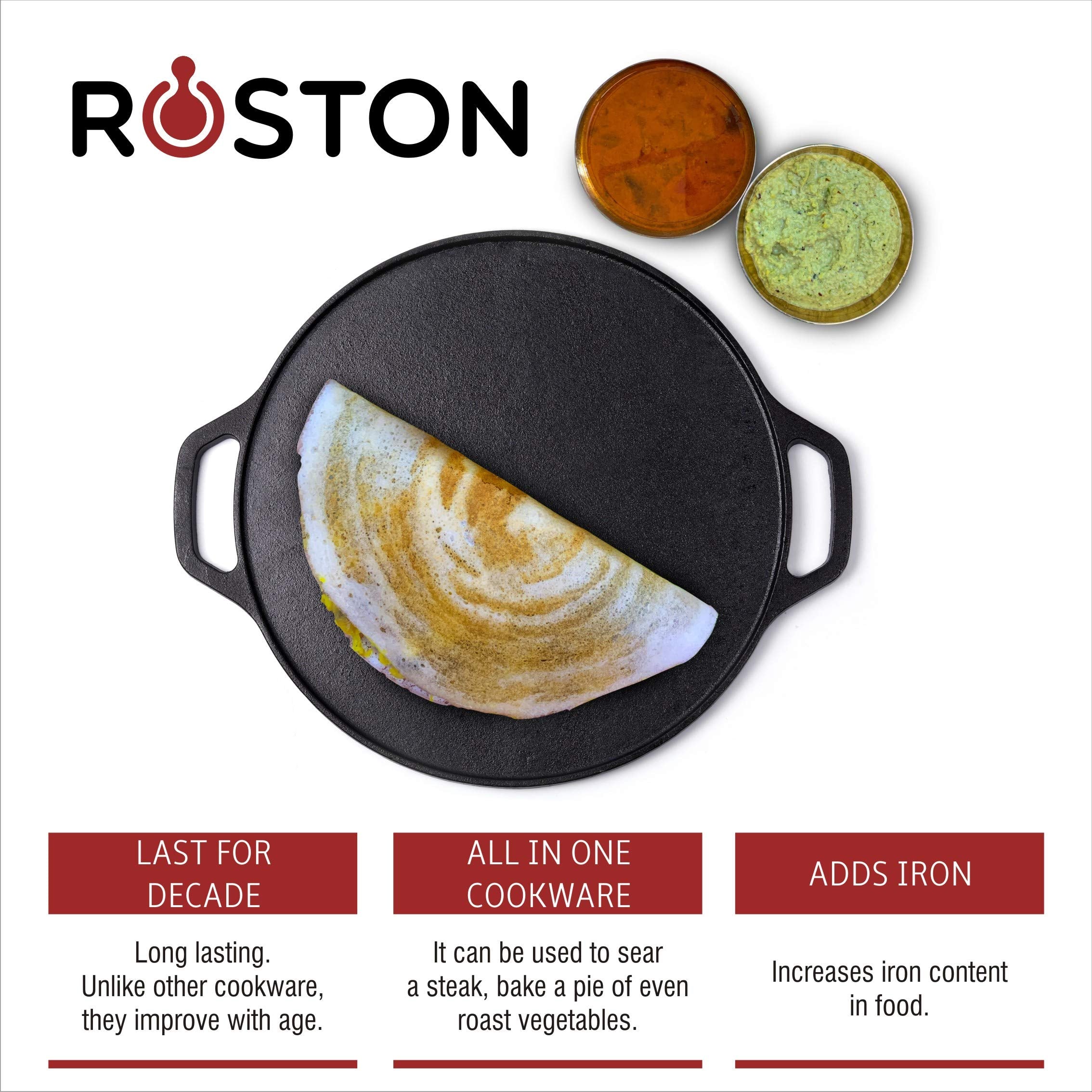Details: Perfect for daily usages The cast iron construction of the pan makes it absolutely easy to maintain and handle. This adds an authentic Indian flavour to your breads and similar preparations such as dosa, uttapam, paranthas, chillas and rotis .