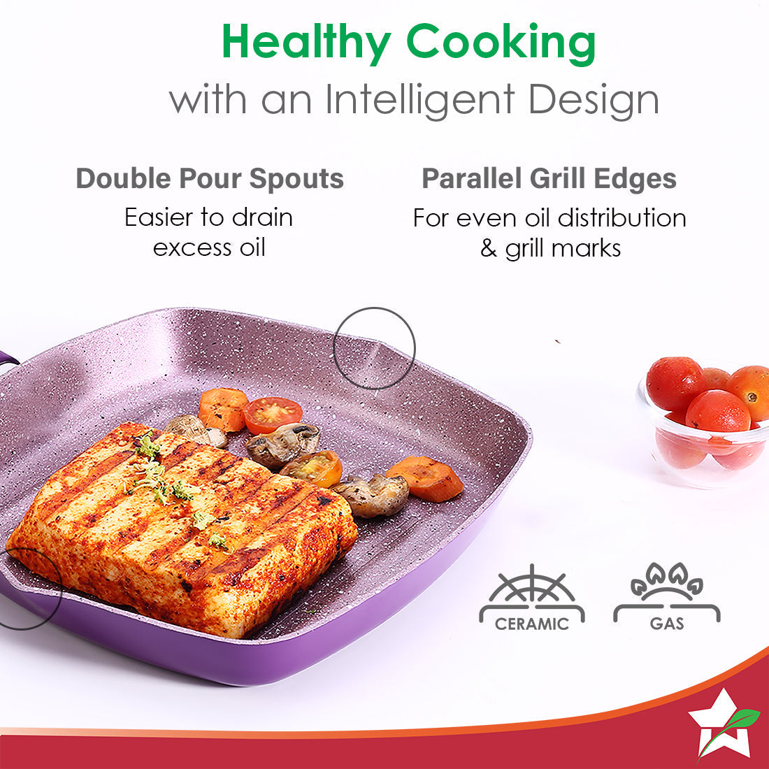 - AESTHETIC DELIGHT – Elevate your kitchen decor with the sleek, stylish design and Regal Purple colour of the Wonderchef Royal Velvet Grill pan that complements your kitchen and enhances your cooking experience.