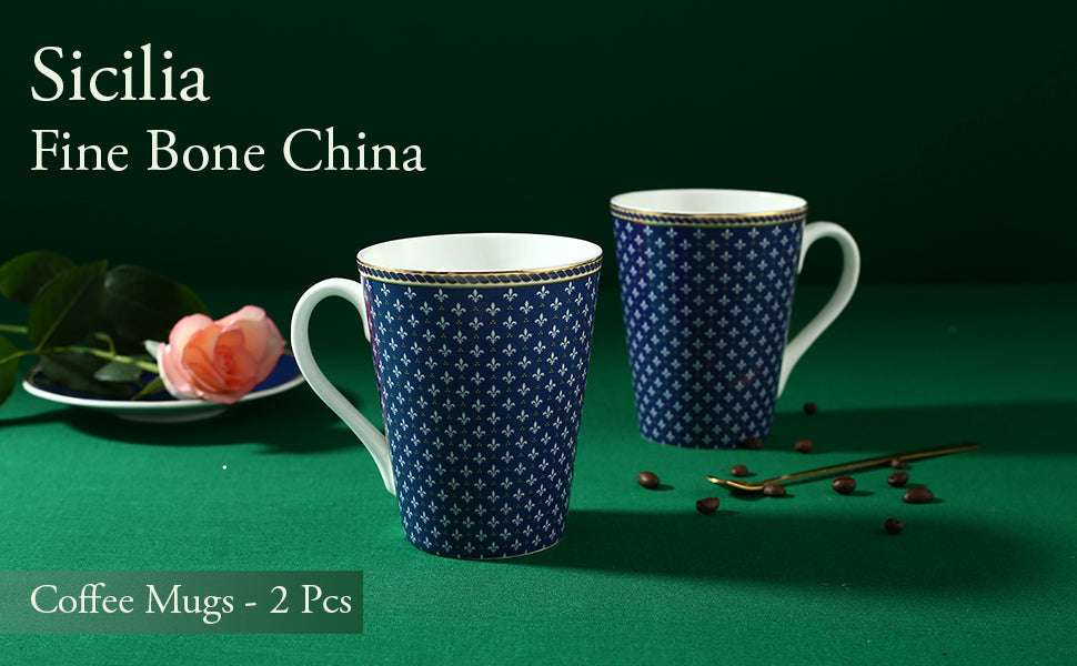 Bring elegance to your coffee time with this mug. Made from bone china, it features a glossy rim and beautifully designed handle that adds to the style. Bring home Sicilia mugs for an enhanced experience.