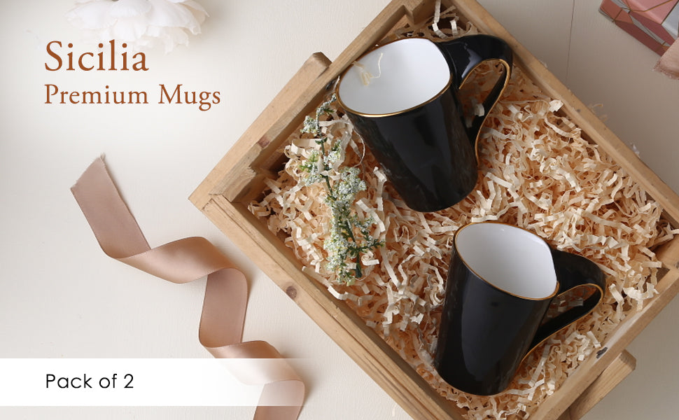 Wonderchef Sicilia premium mugs made in fine bone china epitomize elegance and style. The beautiful shapes, sophisticated colour palettes, ergonomic handle and rim embellishment made of 24K gold makes Sicilia range a perfect choice to welcome your guests and for daily usage. Indulge yourself in this classic black coloured mug. Check out other exciting colour palettes in this range.