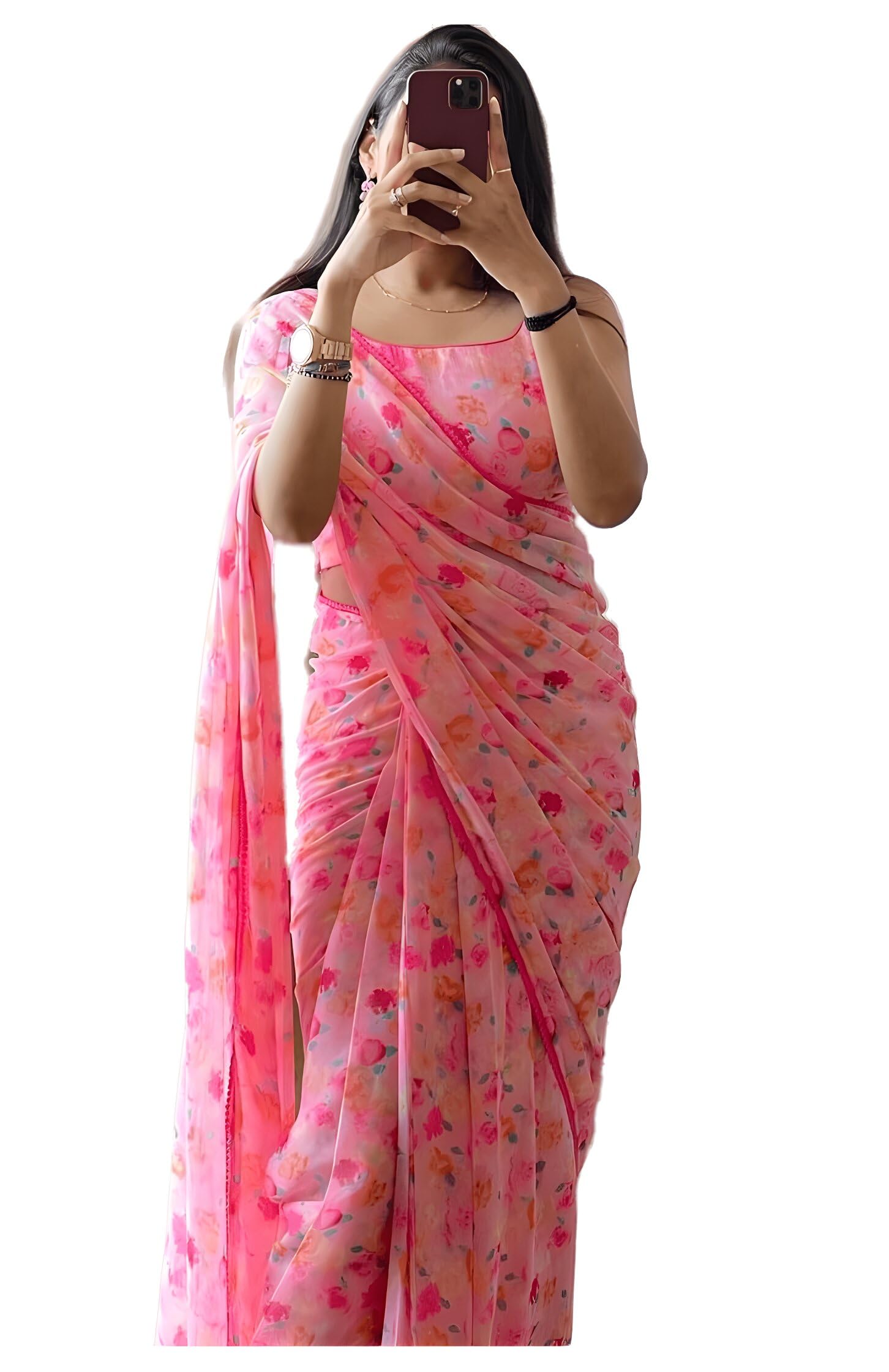 - Weave Type : Digital Floral Printed Georgette Ready To Wear Pre Drapped Stitched Saree
