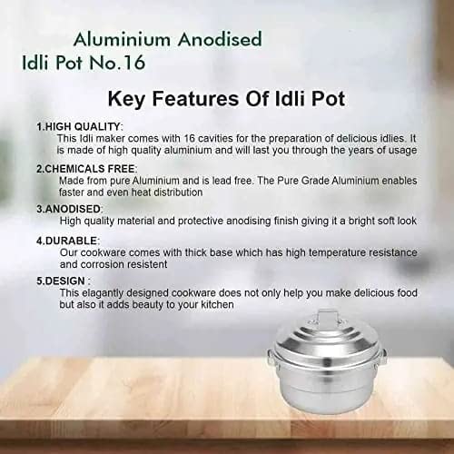 - Package Contents: 1 Anodized Idli Pot (16 liters)
