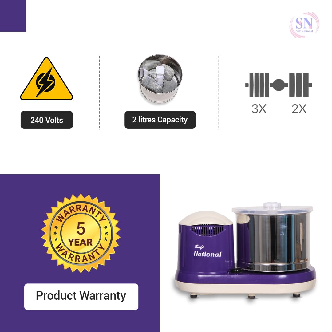 Elevate your culinary experience with the Sufi National ABS Smart Wet Grinder, a sleek and efficient addition to your kitchen arsenal. Crafted to perfection, this best wet grinder features a generous 2-litre capacity, ensuring you have ample space to grind your favorite ingredients effortlessly. Whether it’s idli batter, dosa batter, or any other delicacy, this wet grinder machine is your trusted companion for consistent results every time. Perfect as a grinder for home use, this kitchen grinder includes a durable stone wet grinder mechanism, making it ideal for a variety of recipes.