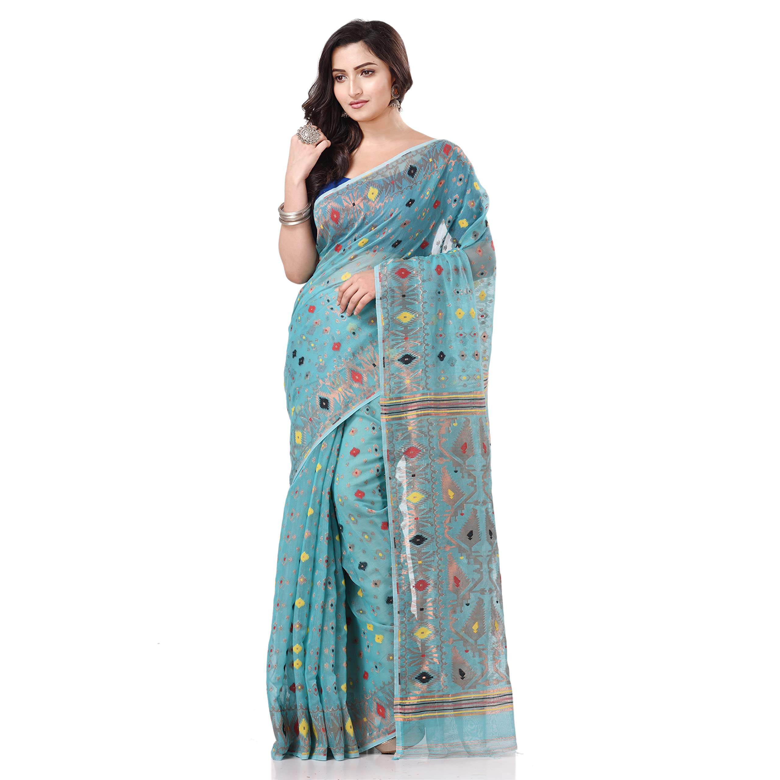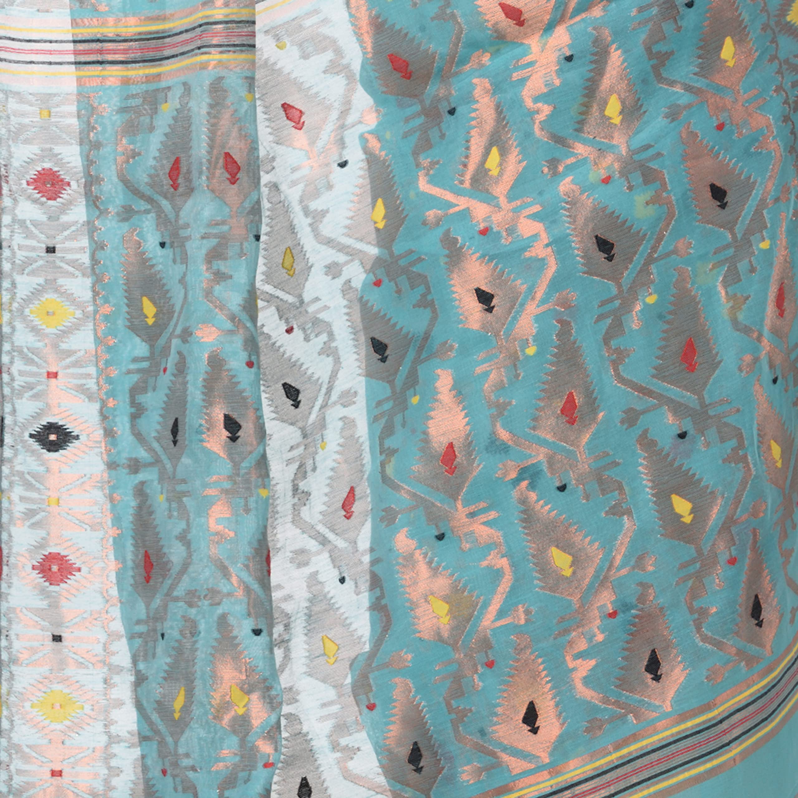 - Contemporary Hand Made pure handloom Cotton Zari Karat Resham Dhakai jamdani Saree designed by experience bengal wavers. Pair this piece with heels or flats for a graceful look