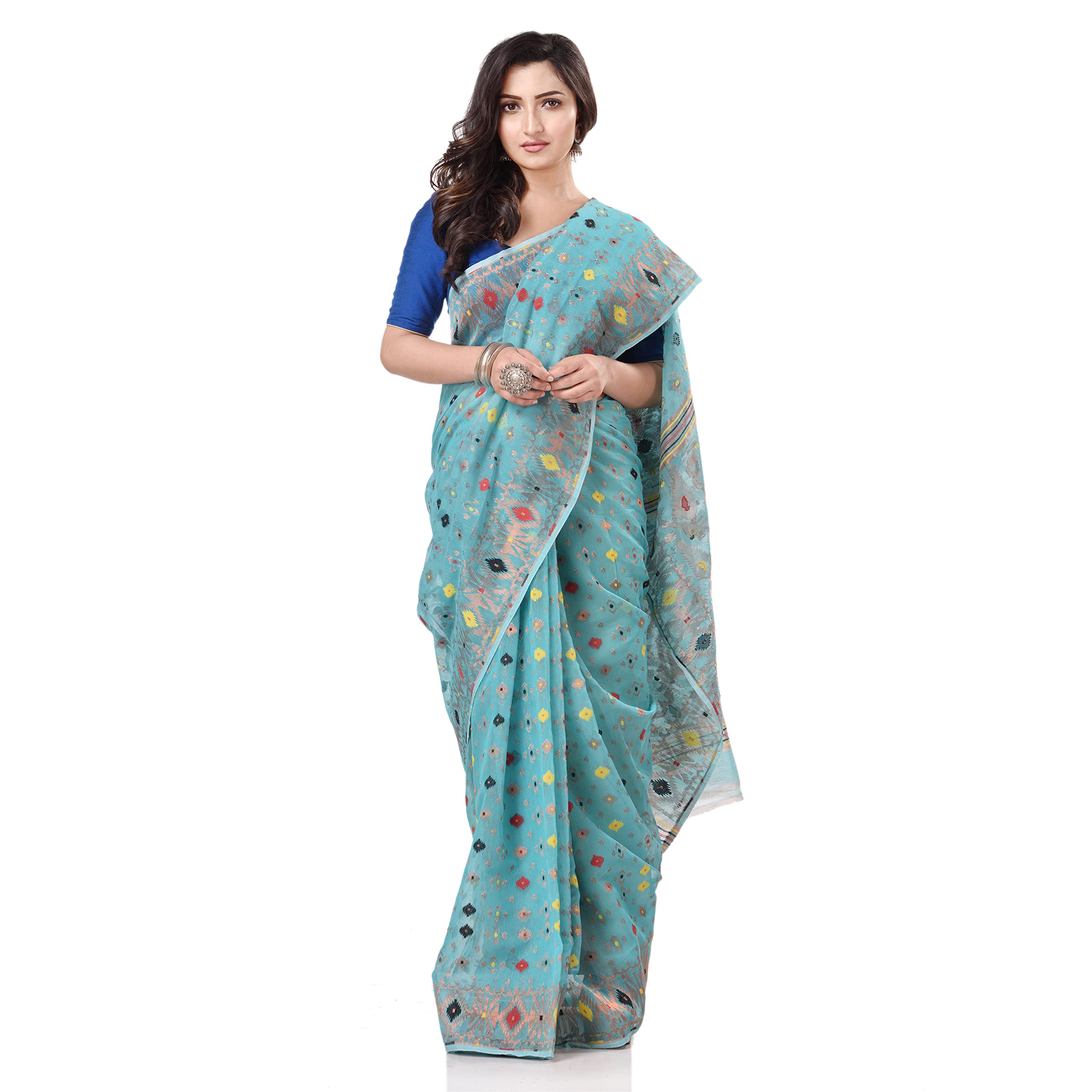 Explore the collection of beautifully Bengal Traditional Tant/Tangail Handloom Hand Made Zari Karat Resham Dhakai jamdani Bengal Pure Cotton Handloom Saree Whole Body Design from TANTLOOM. Each piece is elegantly crafted and will surely add to your wardrobe. Pair this piece with heels or flats for a graceful look. You can wear this saree in all occasions specially Puja, Party and any occasion in your family or friends. The decorative material is Cotton Threads. Its Uniquie cotton thread design whole body. great looking color combination The Elegant Class saree has comes from the TANTLOOM. customer satisfaction is the utmost priority . The color may vary due to screen setting . Fabric: Cotton; Length: 5.50 meter Set Content: Without Blouse Piece Care Instructions: Dry Clean Only Wash Care : Dry Wash Only, Don’t Bleach