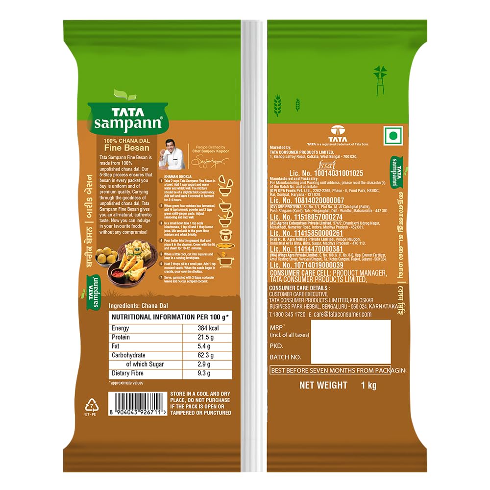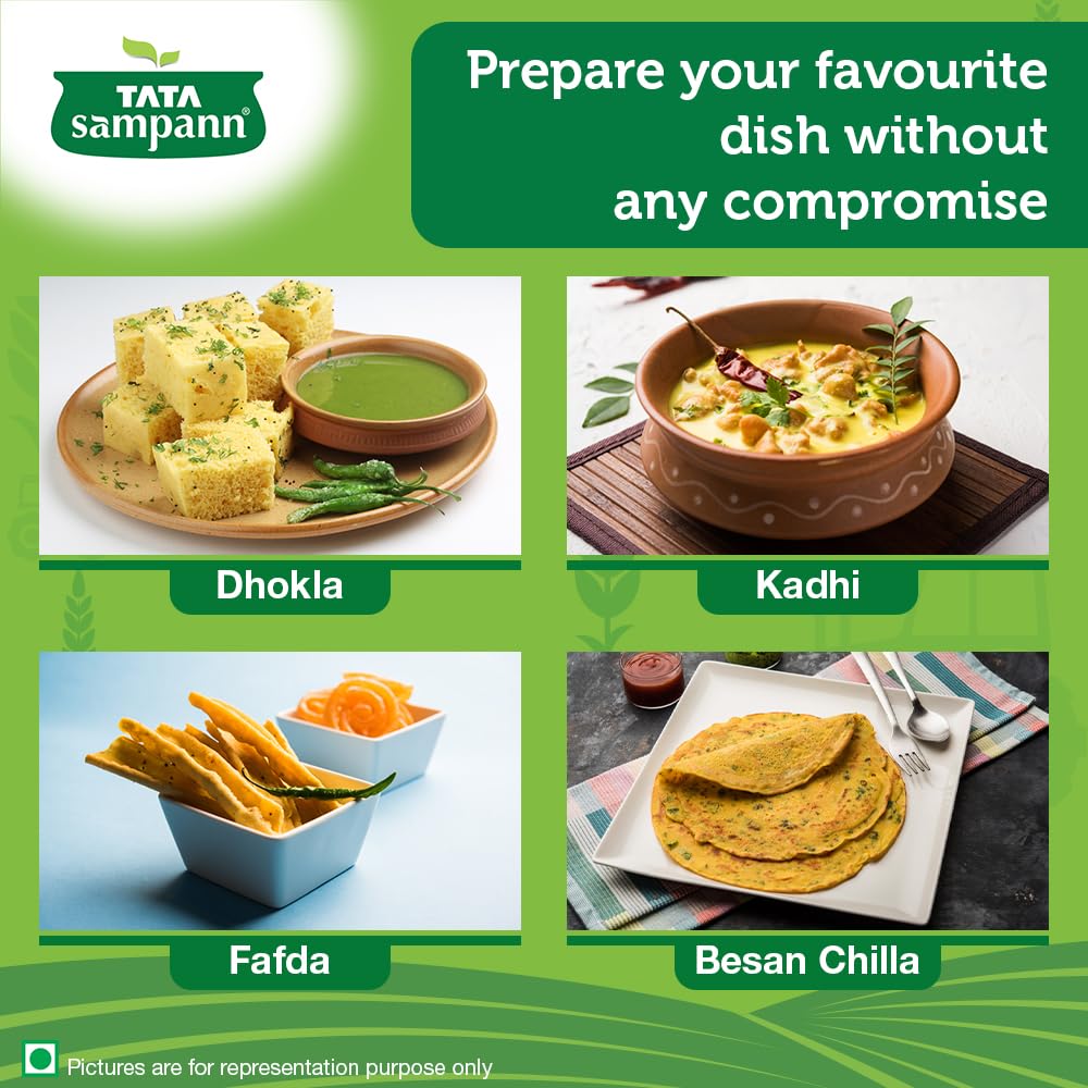 Details: Tata Sampann Fine Besan made from 100% unpolished chana dal is all you need in the kitchen to enjoy an all-natural, authentic taste of in all your favourite recipes. It lets you indulge in dishes like besan ladoo, dhokla, kadhi, fafda, sev and other namkeens. Recommended by Sanjeev Kapoor, Tata Sampann Besan undergoes a 5 step purity process to ensure that besan in every packet you buy is uniform and of premium quality. Karo Goodness ki Shuruaat!