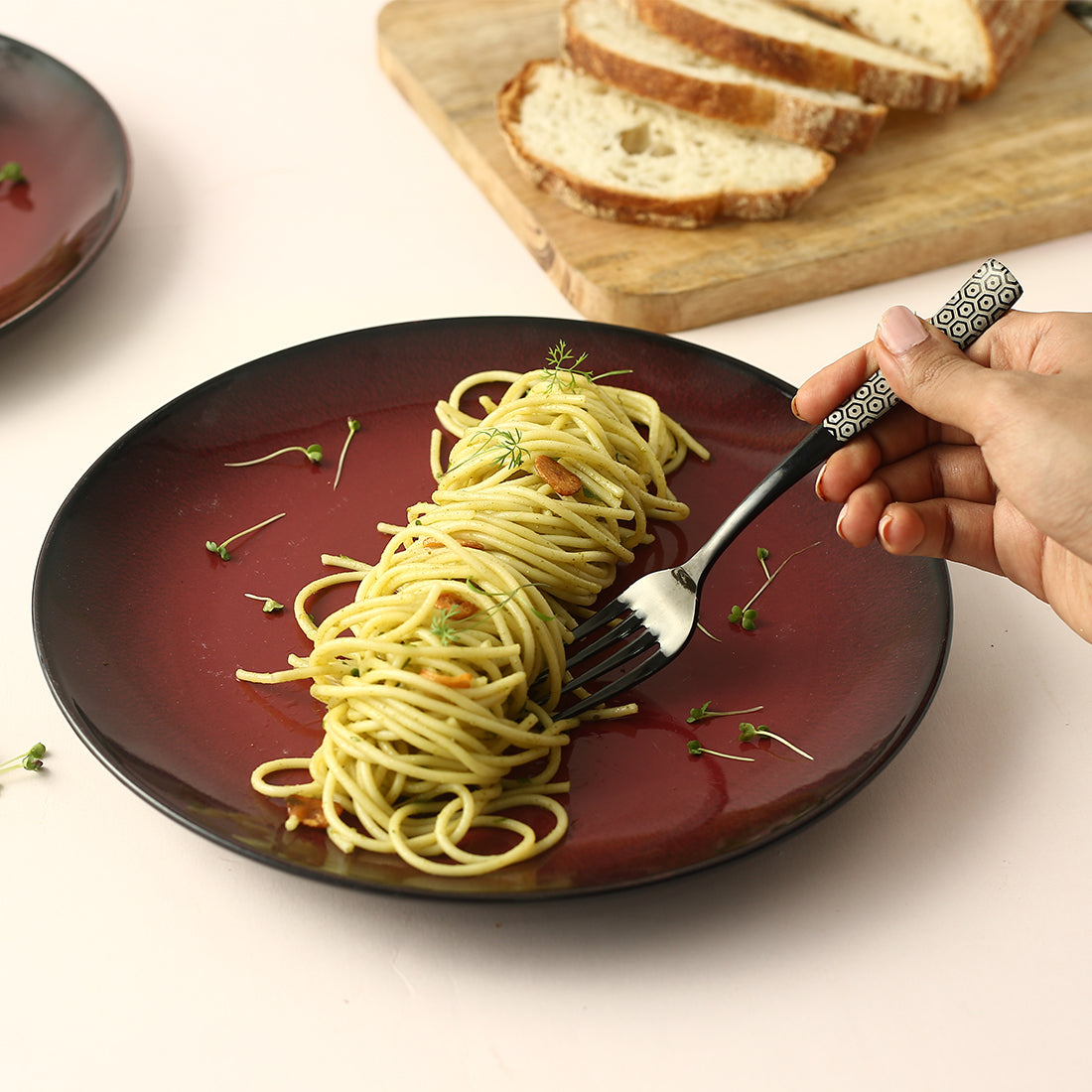 The Teramo dinner plates in a fusion of red & black glaze adds style and drama to your dining.